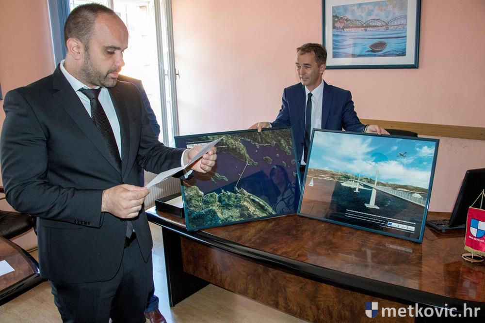 Uime Udruge Pelješki most gradonačelniku je dvije slike mosta predao Blažko Mijić, a darovala ih je Branka Šeparović.