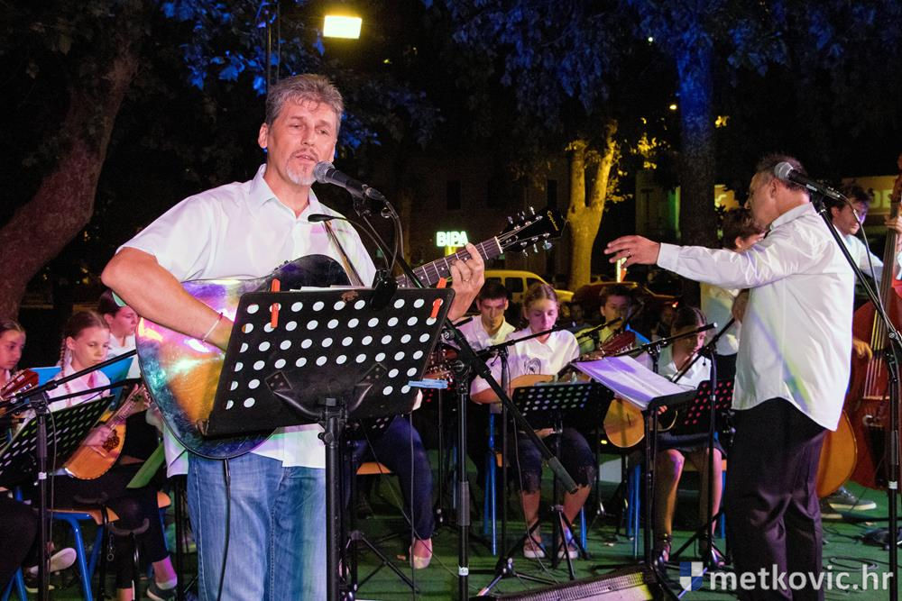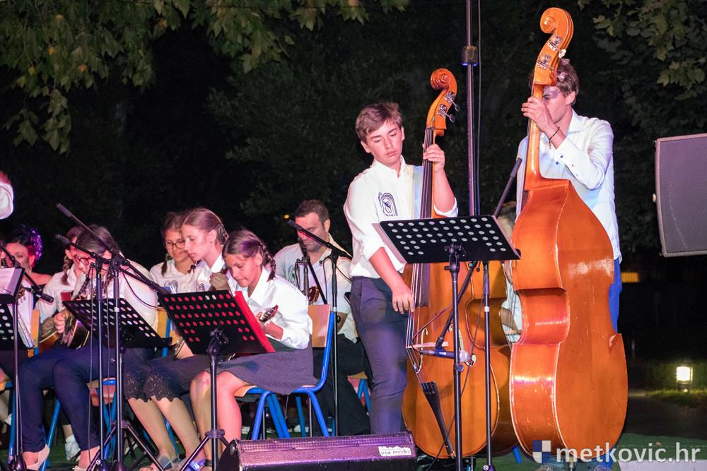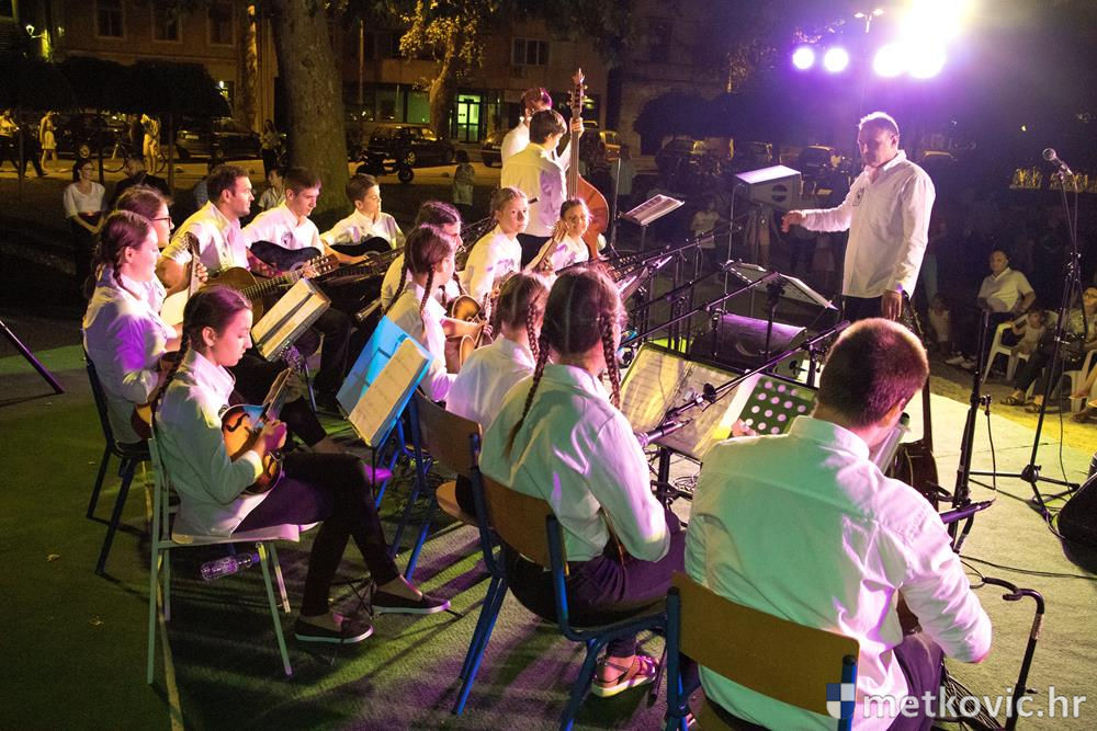 Pred početak programa brojnu je publiku, u kojoj su bili i gradonačelnik Dalibor Milan te zamjenica župana Žaklina Marević, pozdravio predsjednik Društva Mato Obrvan. Pod ravnanjem Tomislava Hercega orkestar je izveo poznate skladbe, a s njima su kao gosti nastupili vokalni solisti Branko Medak, Marija Maja Jerković, Marko Mustapić i Zoran Bebić te Klapa Kumpania iz Vele Luke, Klapa Viole iz Drvenika i Mješovita klapa Sveti Nikola iz Metković. Prema pljesku kojim je popratila izvođače, publika je uživala u repertoaru u kojemu se našlo ponešto za svakoga. Koncert je završen zajedničkom izvedbom poznate pjesme Croatio iz duše te ljubim, a maestro Herceg zahvalio je članovima svoga orkestra, svim gostujućim klapama i solistima te posebno roditeljima mladih glazbenika. Publiku je pozvao na veliki slavljenički koncert KUD-a Metković, koji će se u utorak, 18. srpnja u 20:30 održati na ljetnoj sceni GKS-a.