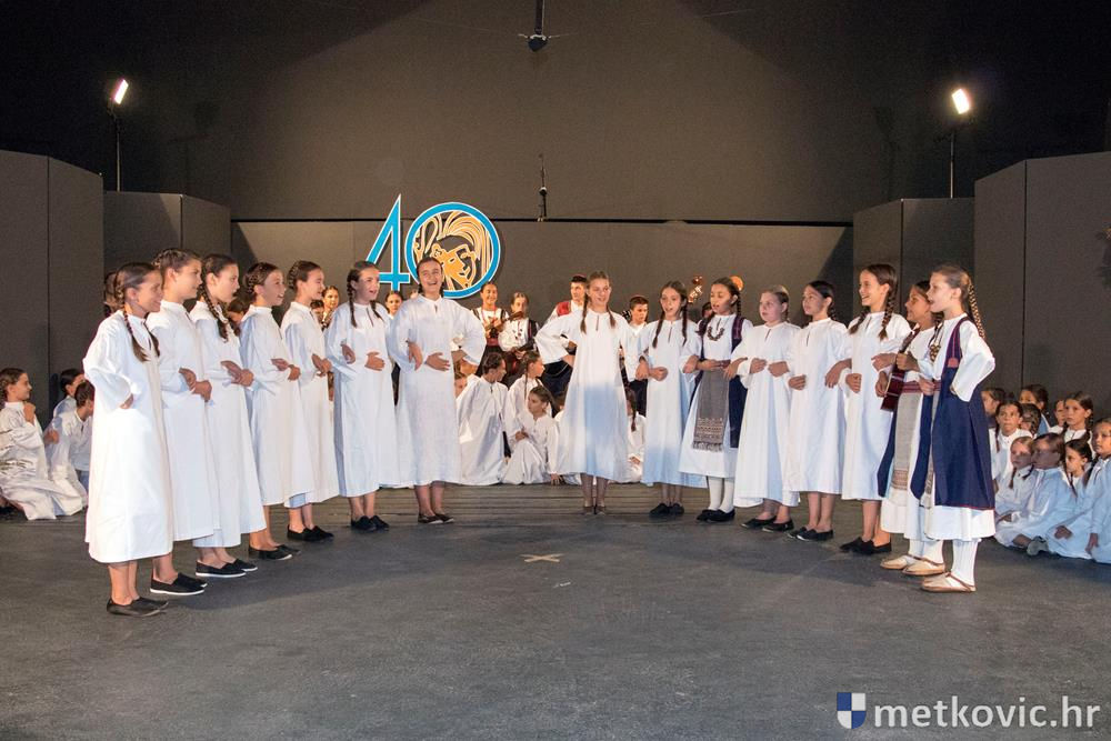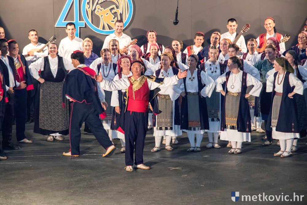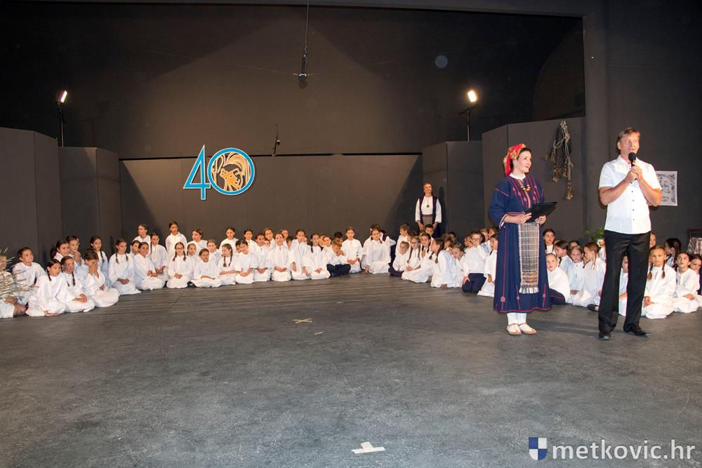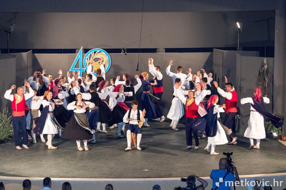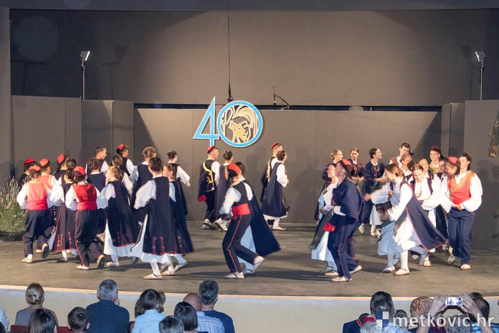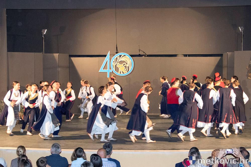 Metković, 19.7.2017. - Da je Metković i grad folklora pokazala je sinoć brojna publika koja je, unatoč atraktivnom koncertu u Športskoj ulici, došla na ljetnu pozornicu s članovima KUD-a Metković proslaviti 40-tu obljetnicu osnutka toga vrlo aktivnog društva, a oni su joj se odužili pravim spektaklom.