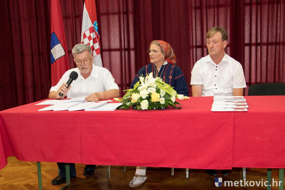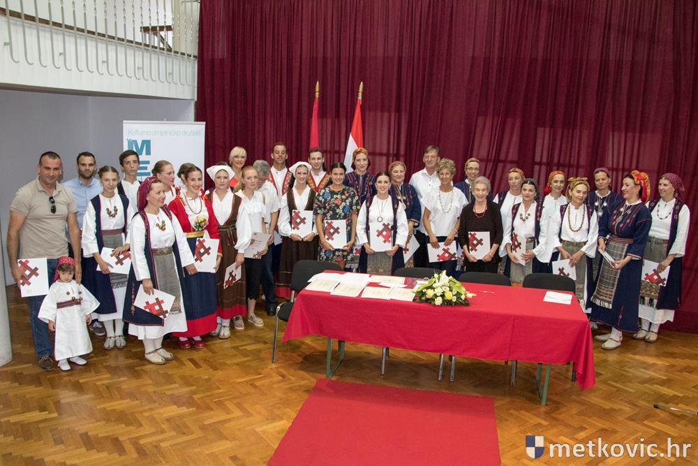 Prekjučer je izaslanstvo KUD-a Metković na Gradskome groblju sv. Ivana Nepomuka položilo cvijeće u spomen na preminule članove KUD-a, a sinoć je u Galeriji GKS-a održana Svečana sjednica. Nakon pozdravnih riječi predsjednika Društva Mate Obrvana, o djelovanju KUD-a tijekom 40 godina govorio dugogodišnji tajnik Zdravko Obradović. Srđana Vrsalović iz Hrvatskoga sabora kulture dugogodišnjim je članovima uručila brončane, srebrne i zlatne diplome. Naročite, dijamantne diplome dobili su Vidoslav Bagur, Radojka Bagur, Divna Dragović, Jurica Pipinić i Zdravko Obradović.