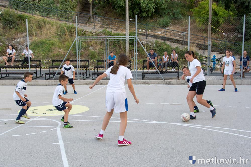 Metković, 21.7.2017. - U utorak je je na ŠRC Orašina odigrana završnica Malonogometnoga memorijalnog turnira Eugen Erjauc. Prvi susret večeri bio je revijalnoga karaktera u kojem su limači NK Neretve pobijedili limačice ŽNK Neretva rezultatom 3:1.