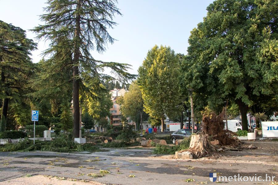 Jak vjetar na više je mjesta otkidao grane stabala, a pred Lučkom kapetanijom iz korijena je izvalio dvadesetmetarski cedar, koji je pao tik uz parkirani automobil. Na svu sreću šteta nije velika, kolika je mogla biti.