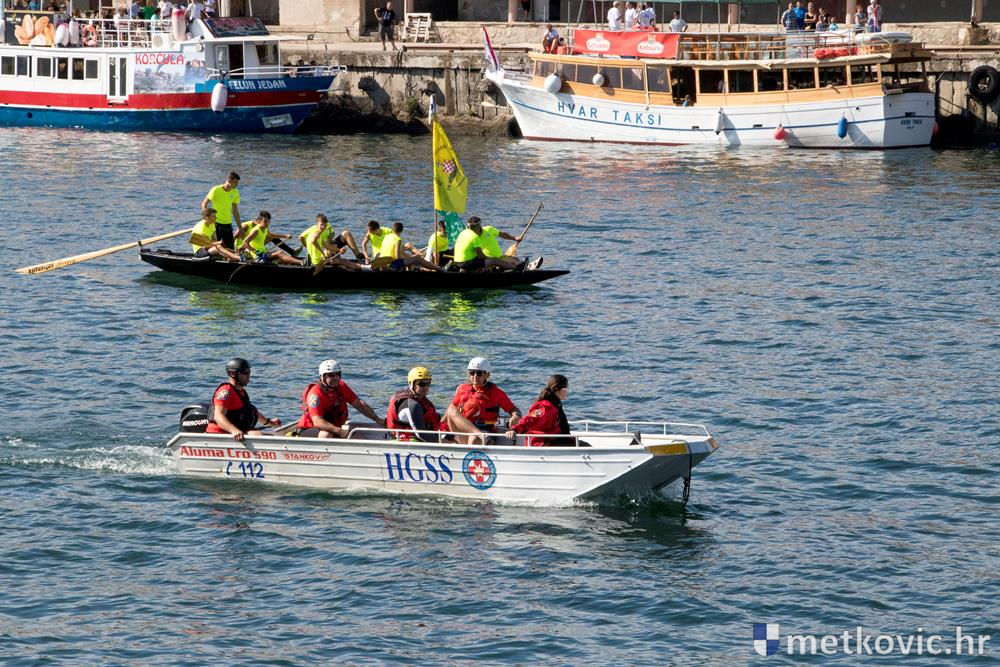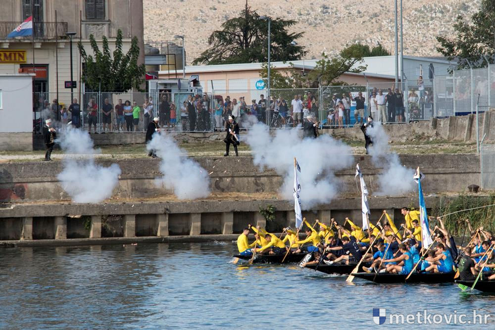 Sama je utrka prošla u redu, osim što su Krvavčani imali nezgodu s nalijevanjem vode u lađu pa su tako na pola utrke izgubili vodeće mjesto. Kominjani su zasluženo prvi pa su se sa šest pobjeda izjednačili s Rogotinjanima. Njima je zlatne medalje predao Mate Granić, izaslanik predsjednice Grabar Kitarović, a veliki Domagojev štit predao im je predsjednik Sabora Jandroković. Bjelovarskim Argonautima srebrne je medalje oko vrata objesio župan Dobroslavić, metkovski gradonačelnik Dalibor Milan predao im je mali srebrni Domagojev štit u trajno vlasništvo.
