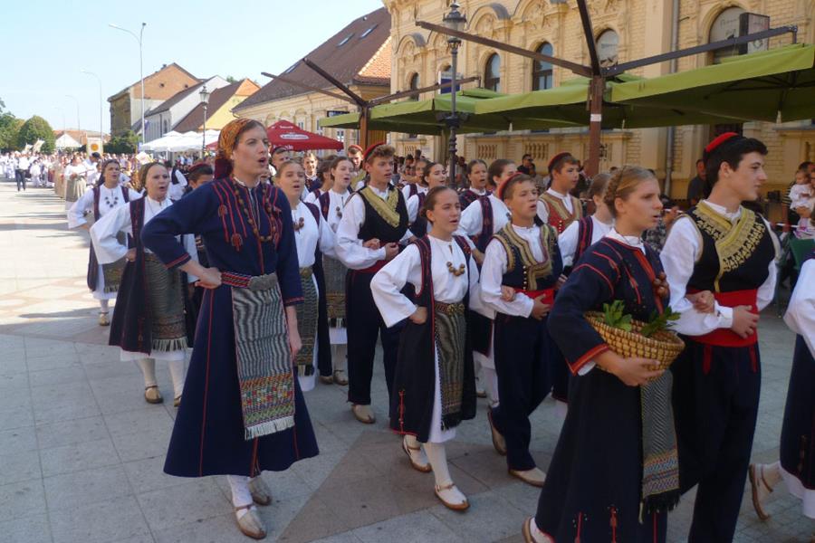 Prolazeći u mimohodu, mladi folkloraši su izvodili dijelove svog programa i tako mnogobrojnoj publici predstavljali kraj iz kojeg dolaze, a koja ih je cijelim putem nagrađivala pljeskom. Ponosno noseći narodnu nošnju svoga mjesta i kraja pokazali su da su marljivi i ponosni čuvari baštine koju su naslijedili od svojih predaka.