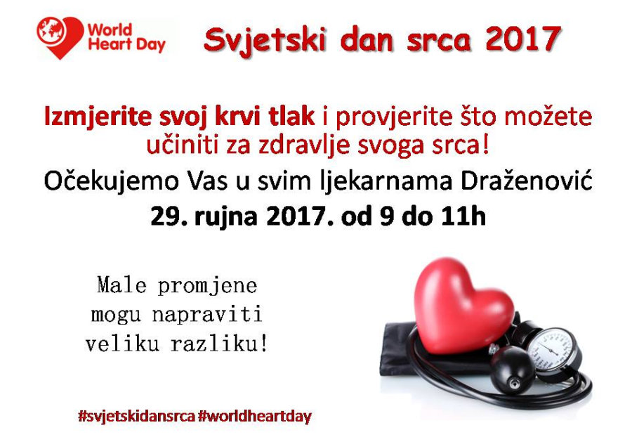 Svjetska federacija srca (World Heart Federation) obilježava taj dan na globalnoj razini, a Ljekarna Draženović će podržati tu inicijativu te donijeti dašak svjetskih događanja i u našu neretvansku sredinu.