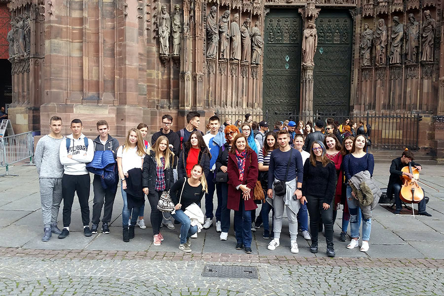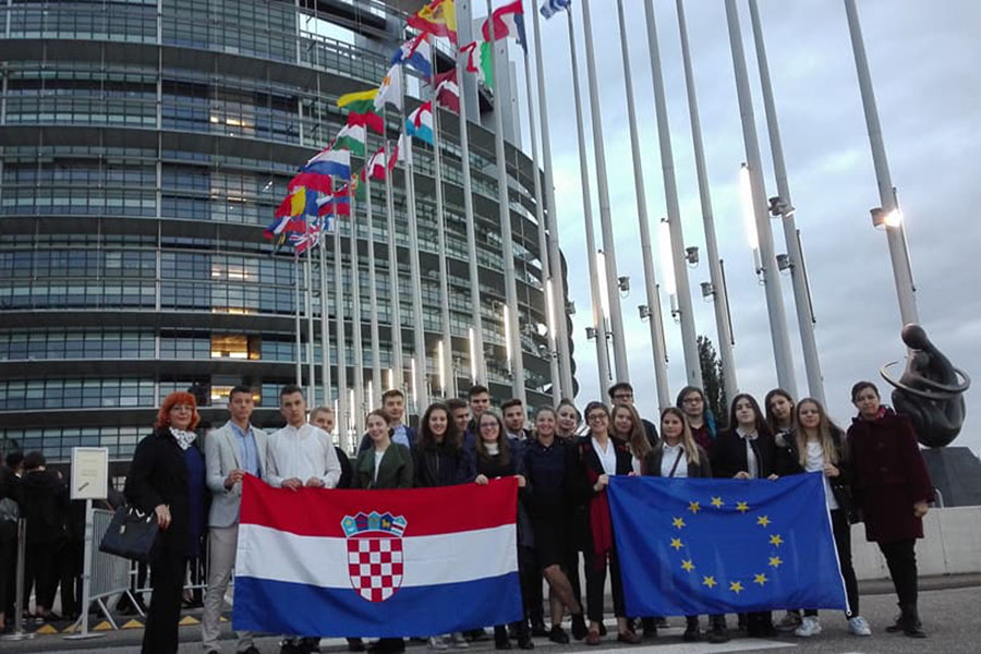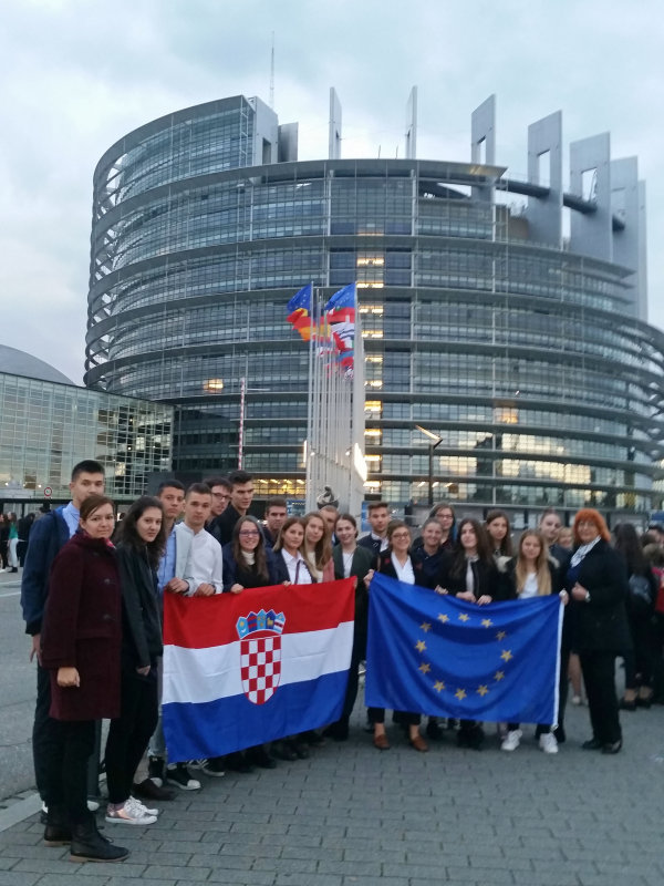 Podjećamo, naši gimnazijalci već su bili na Euroscoli pobijedivši na debatnom natjecanju u Splitu u listopadu 2013. Ovaj put smo osvojili putovanje u Strasbourg kao Škola ambasador Europskog parlamenta u suradnji s Uredom za informiranje Europskog parlamenta u Hrvatskoj, izvanrednim nastupom na događaju #MladiEU 2017 u proljeće ove godine. U pratnji dvadeset naših učenika (ambasadora juniora) bile su njihove profesorice engleskog jezika Gordana Nikolić i Branka Vladimir.