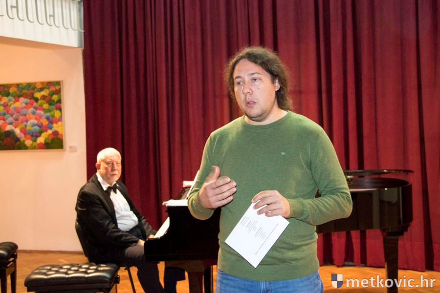 Goste je publici predstavio ravnatelj Ustanove za kulturu i sport Milan Kapović, rekavši da će ove sezone u Metkoviću iz ciklusa koncerata HGSM-a biti dva koncerta, a moguć je i treći. Prof. Jakša Zlatar je rekao da nema baš puno kompozicija pisanih za klavirska dua te da su oni odabrali Schubertovu Fantaziju u f-molu, Debussyjevu Petite Suite te Rahmanjinovljev Six pieces Op. 11, iz kojega su izveli četiri od šest stavaka.