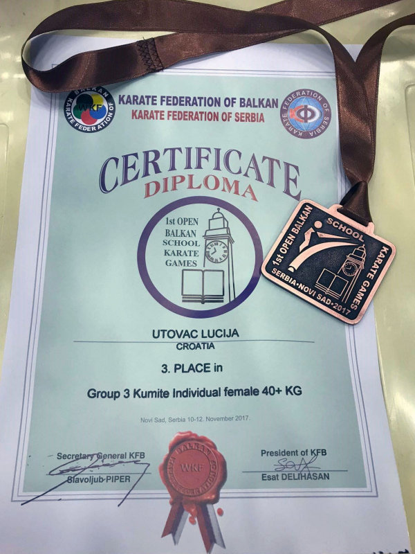 Natjecateljica Karate-kluba Metković Lucija Utovac, kao nositeljica državne medalje za 2017., plasirala se za nastup u reprezentaciji i nastupila je među 13 natjecateljica u kategoriji osnovne škole 2006./2005.,djevojčice +40 kg. U prvom meču Lucija je pobijedila podosta visoku predstavnicu Srbije Anđelu Ivanović, u drugom meču pobjeđuje i reprezentativku Slovenije Hanu Čajić, da bi u borbi za ulazak u finale ostala neriješeno 0:0 protiv domaće predstavnice Srbije Ane Nijemčević, ali odlukom sudaca gubi.