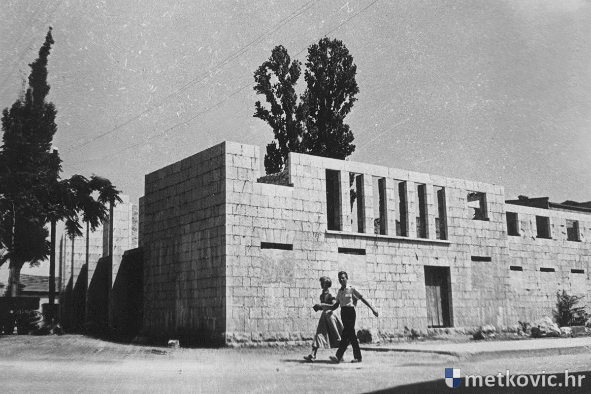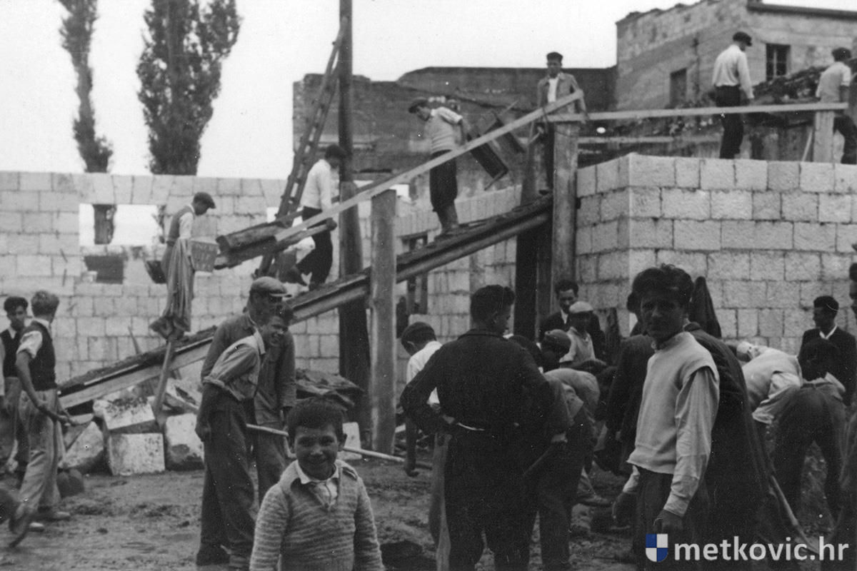 Mario Talajić nam je iz Zagreba poslao fotografiju Doma kulture u poodmakloj fazi građenja. Riječ je najvjerojatnije o prijelazu sa šezdesetih na sedamdesete godine, a na kamenoj građevini ističe se sivilo zidova prizemlja jer se s radovima stajalo u nekoliko navrata. Inače, Freudenreich je bio cijeli kompleks predvidio za potrebe kulture, no na prvi kat južnoga krila uselilo se Izvršno vijeće Općine Metković, a na drugi kat Radničko narodno sveučilište Metković. Danas je u tome krilu smještena Gradska uprava, dok je ostatak kompleksa Gradsko kulturno središte. Pred pročeljem je stablo koje je posječeno kada se 1971. podizao spomenik Stjepanu Radiću.