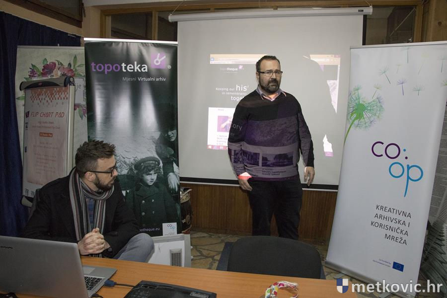 8.12.2017. - U prostorijama Volonterskoga centra Dobra sinoć su Ladislav Dobrica, Renata Horvat i Tihomir Pleše iz Hrvatskog državnog arhiva predstavili virtualnu platformu Topoteka, čija je svrha uključiti lokalnu zajednicu u digitalno arhiviranje i javno izlaganje građe (fotografije, dokumenti, audio/video zapisi…), koja je nedostupna, budući da se uglavnom nalazi u privatnim zbirkama.
