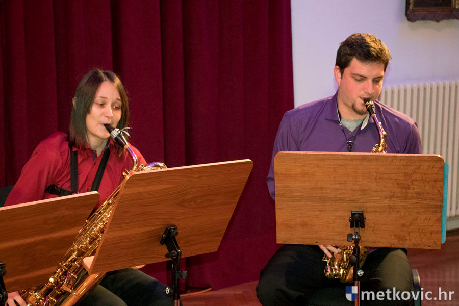 Svirao se Handel, Lantier, Dobussy, Detoni, Matitia, Escaich i Iturralde, te nakon velika pljeska publike mladi su glazbenici kao dodatak izveli Duet cvijeća iz Delibesove opere Lakme. Marko Gerbus (sopran saksofon), Deni Pjanić (alt saksofon), Nereo Arbula (tenor saksofon), i Erna Čizmić Rebić (bariton saksofon) Kvartet su osnovali 2015. godine, a koncertom u srpnju iste godine u ciklusu Čari klasične glazbe u Podrumima zabilježili su svoj prvi nastup. Od tada je kvartet ostvario brojne nastupe i sudjelovao na raznim manifestacijama, od čega se posebno ističe nastup na Izlogu suvremenog zvuka u Zagrebu, te nastupi na Danima nove glazbe u Splitu. Dobitnici su I. nagrade na Međunarodnom natjecanju Davorin Jenko u Beogradu 2016. godine, te I. nagrade na regionalnom i II. nagrade na državnom natjecanju komornih sastava 2017. godine. Repertoar kvarteta obuhvaća djela iz svih stilskih razdoblja – od baroka do suvremene glazbe.