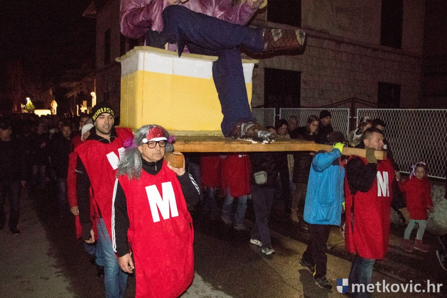 13.2.2018. - Nakon kratka, ali efikasna sudskoga procesa na Trgu kralja Tomislava, večeras je uz zvuke posmrtnoga marša na Maloj rivi u Metkoviću spaljen Marko Krnjeval i bačen u Neretvu, neka ga voda nosi.