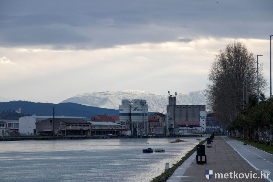 Metković, 23.3.2018. - Jutros nas je uz lagani sjeveroistočnjak i oko 3 ⁰C dočekao snijeg na okolnim brdima. Bijele se masivi Žabe i Rujnice te brda u Hercegovini. Na svu sreću, Neretva je pod kontrolom.