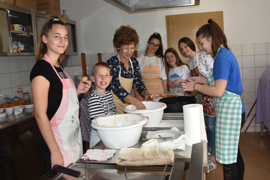 U drugom dijelu prostorije pravio se razdjeljak na sredini glave i plele su se pletenice. Dok su se jedni igrali, drugi pleli pletenice vrijedne ruke mijesile su fritule na starinski način – posne fritule kakve su se pravile i na Badnjak, ali i one malo jednostavnije koje se prakticiraju u novije vrijeme i iziskuju manje vremena za pripremu. Djeca su stjecala dragocjena iskustva i spoznaje neposrednim doživljajem načina života naših starih jačajući tako svoj zavičajni identitet.