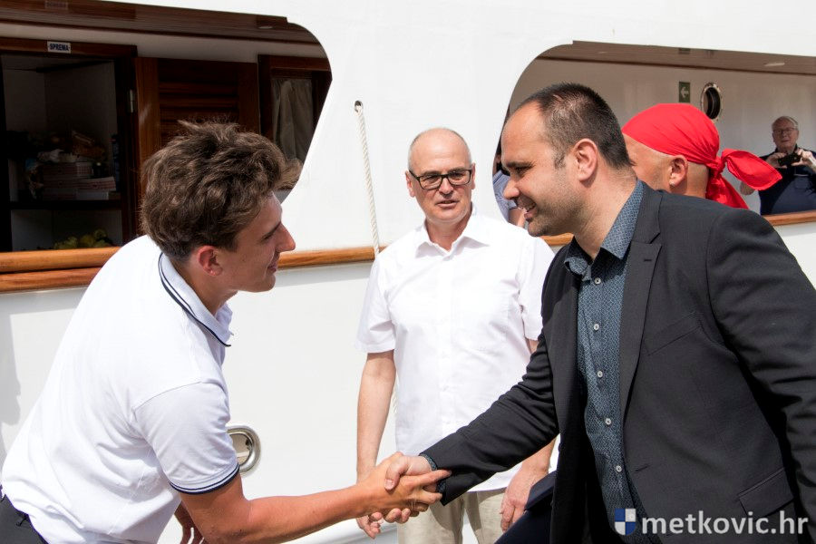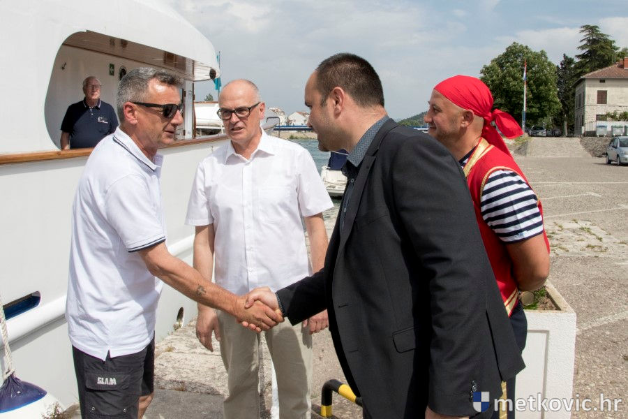 Goste je na Maloj rivi dočekao gradonačelnik Dalibor Milan, direktorica Turističkoga ureda TZ grada Metkovića i Magdalena Medar Ujdur i Dragan Tolić uz Turističkoga obrta Neretva info. Vedran Dragovići i osoblje Restorana Lopoč uz glazbu su ih ponudili domaćom kapljicom i fritulama.