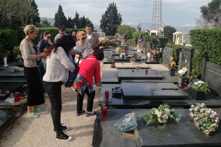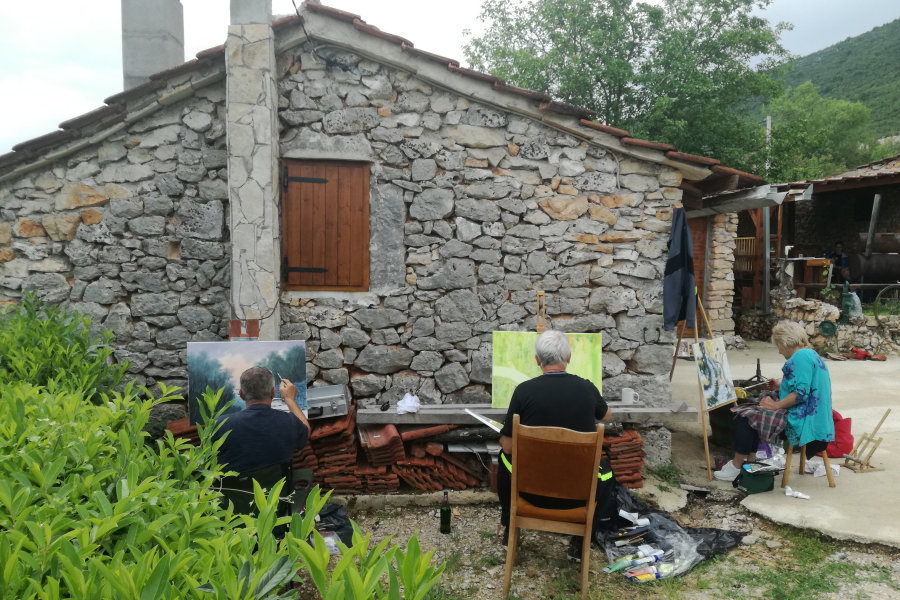 Nakon što su se okupili u udruginim prostorijama, umjetnici su u pratnji članova Udruge posjetili grob pok. Zupe, na kojemu su položili cvijeće i zapalili svijeće. Potom su se uputili u Pozlu Goru kod g. Jadranka Petrića, koji ih je srdačno pozvao na svoje imanje.