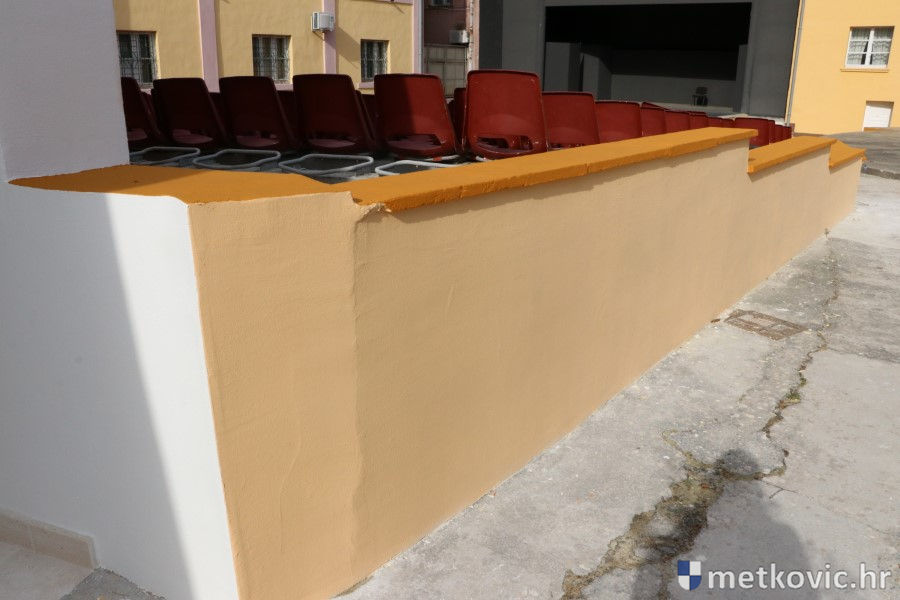 Nakon odgovarajućih hidroizolacijskih radova vrlo je kvalitetno sanirana Freudenreichova ulazna fasada (polimer cementno ljepilo s utisnutom mrežicom), isto kao i sve žbukane površine atrija, koji je dobio nove podne pločice i elektroinstalaciju. Saniran je i zidić uz desni rub gledališta te ogradni zid uz Neretvu. Na terasi je na propisanu visinu postavljena ograda i izrađen novi rukohvat na spiralnim stubama.
