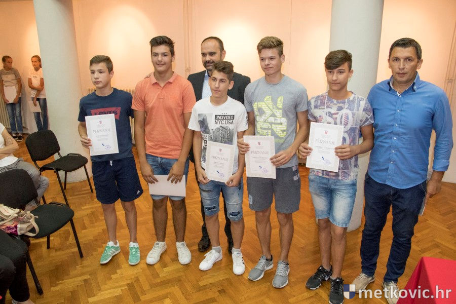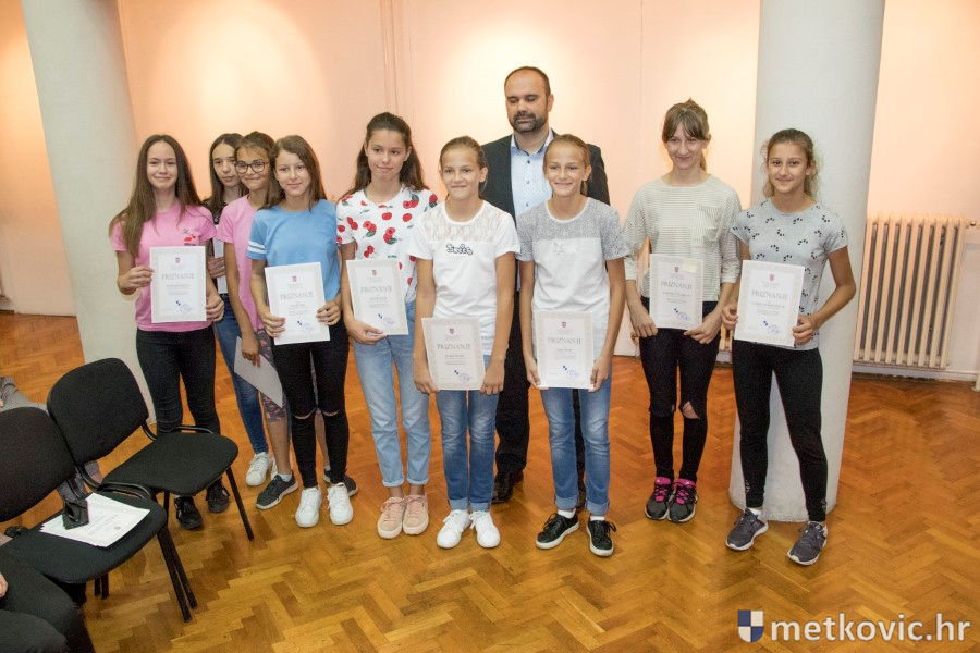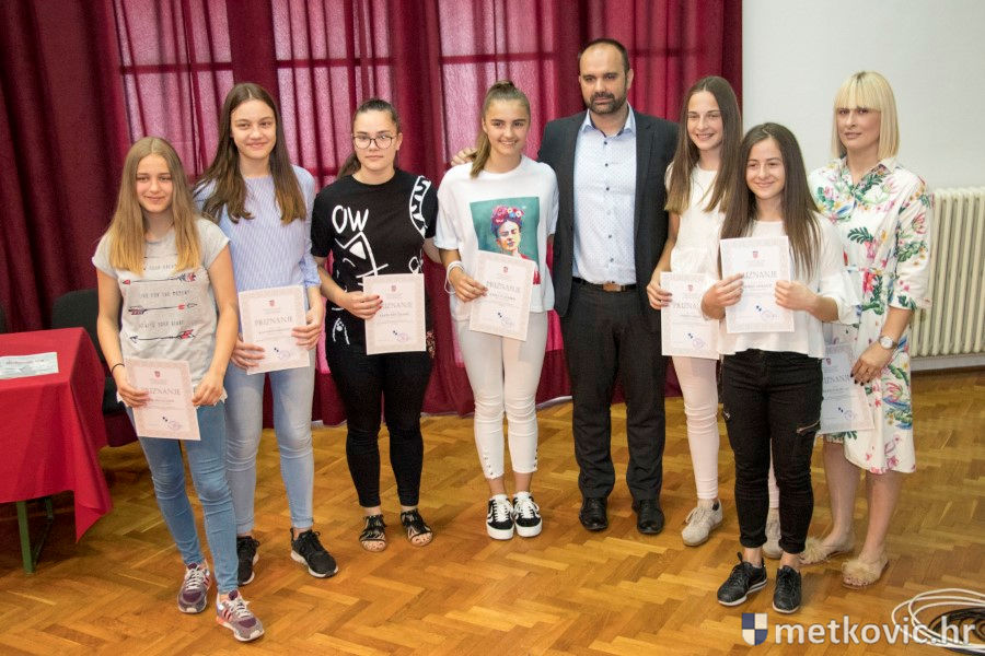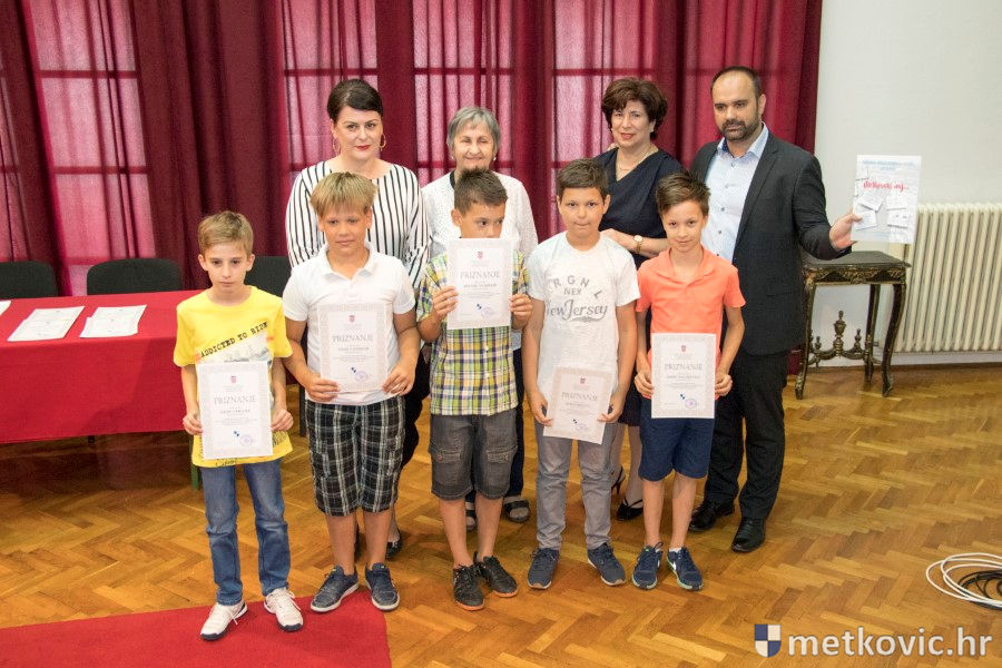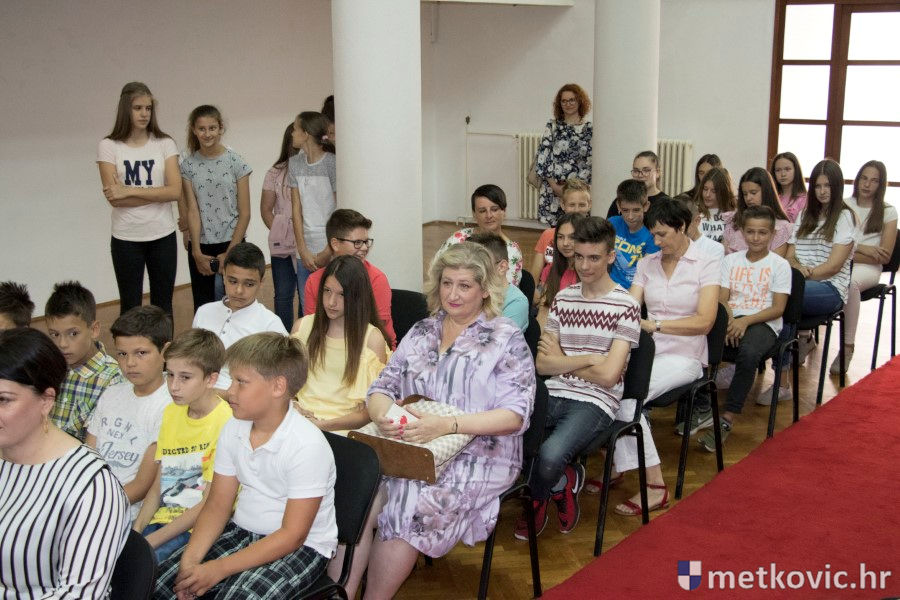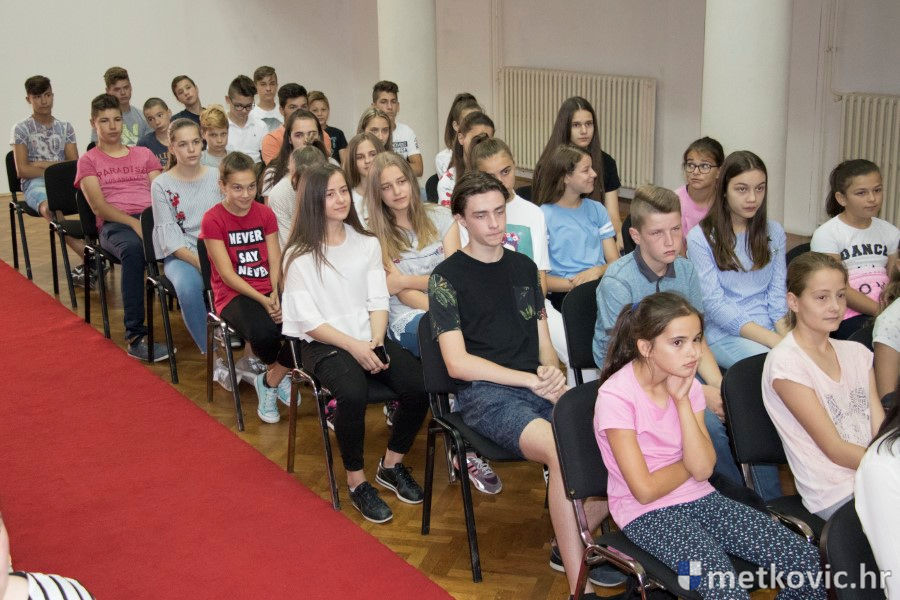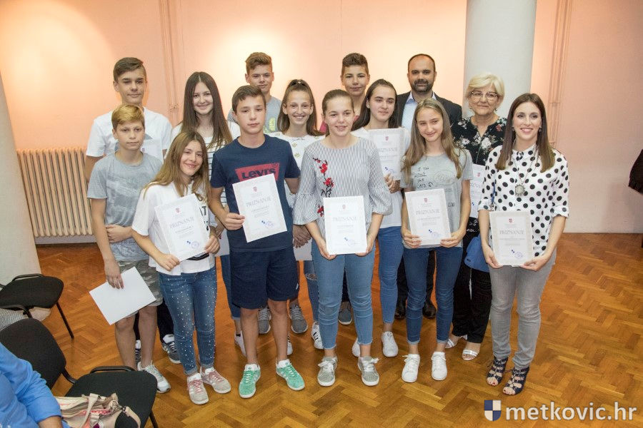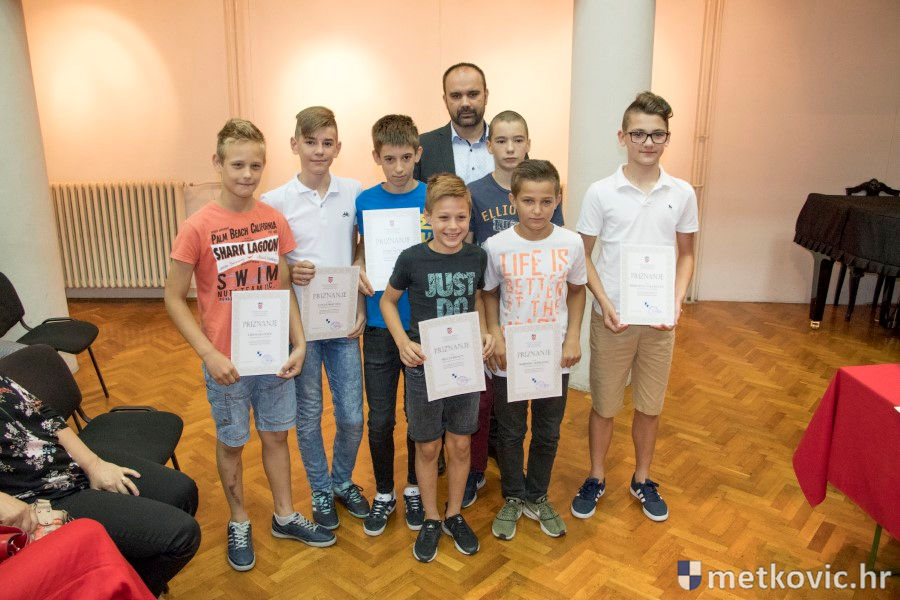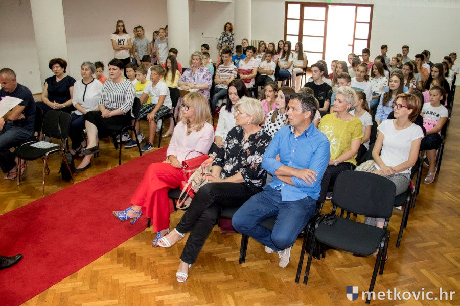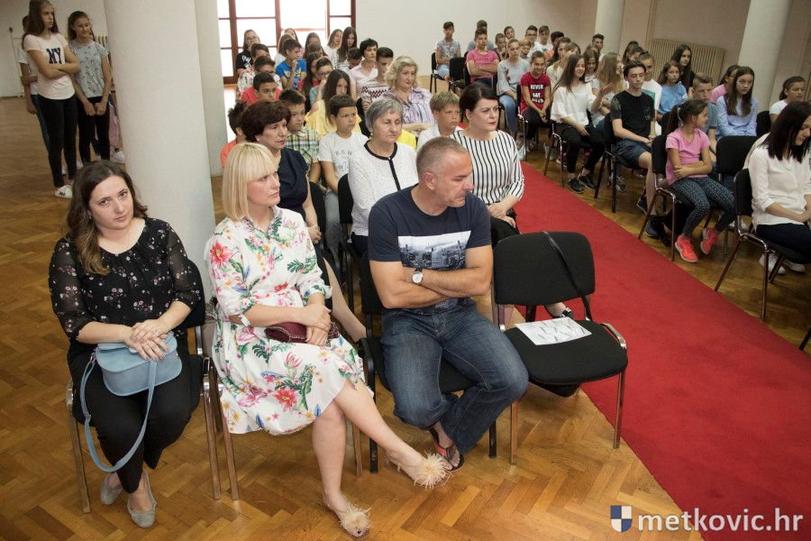 Metković, 28.6.2018. - U galeriji GKS-a danas je gradonačelnik Dalibor Milan primio učenike i mentore iz metkovskih osnovnih škola Stjepana Radića i don Mihovila Pavlinovića te im uručio priznanja za njihovo sudjelovanje i uspjehe na državnim natjecanjima u znanju i sportu te na smotrama.