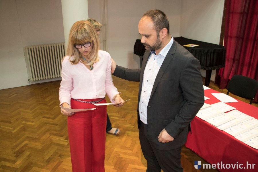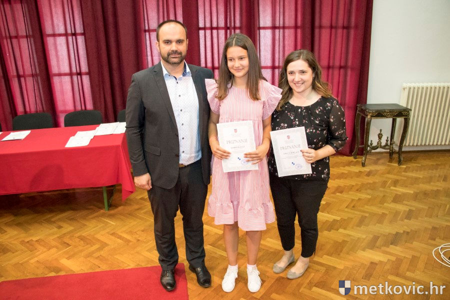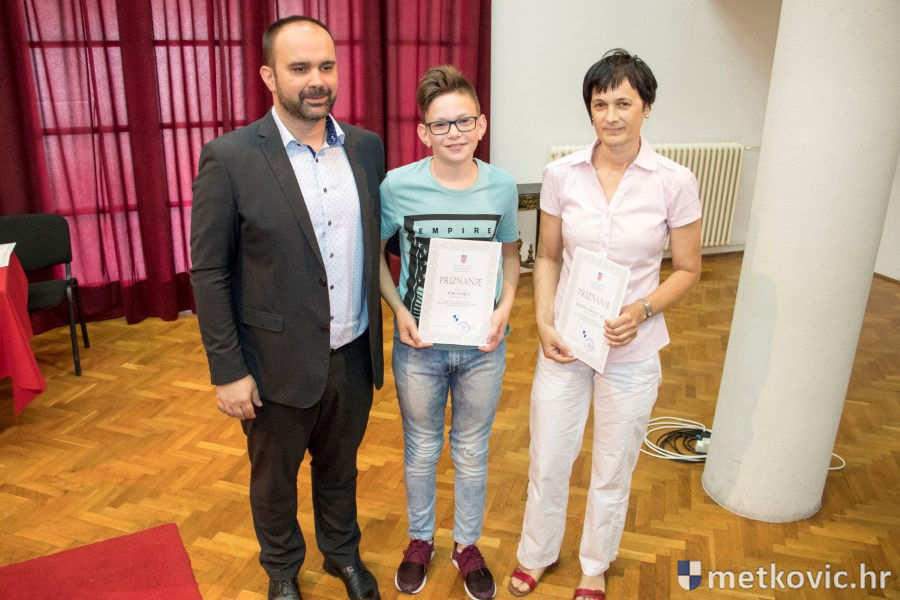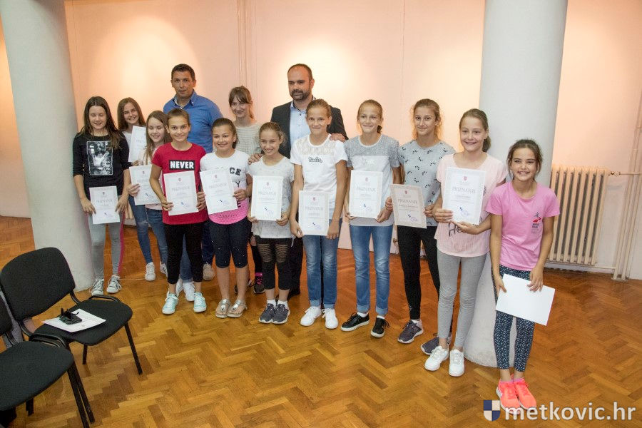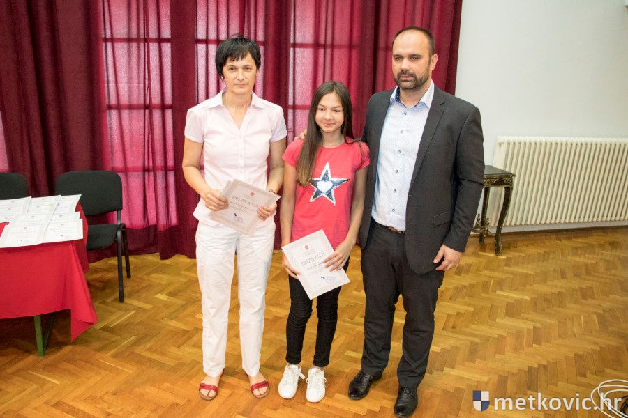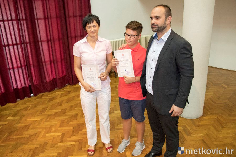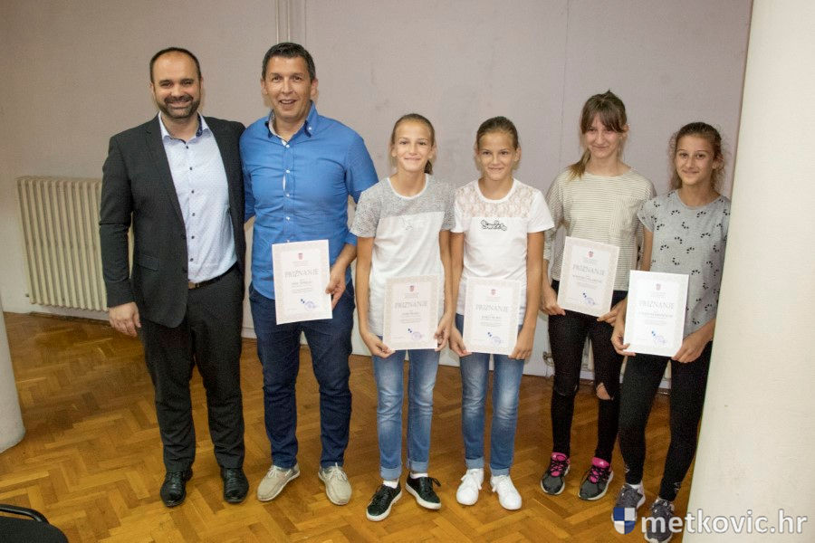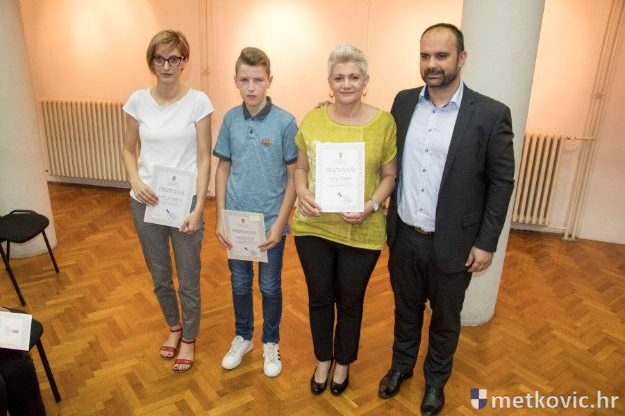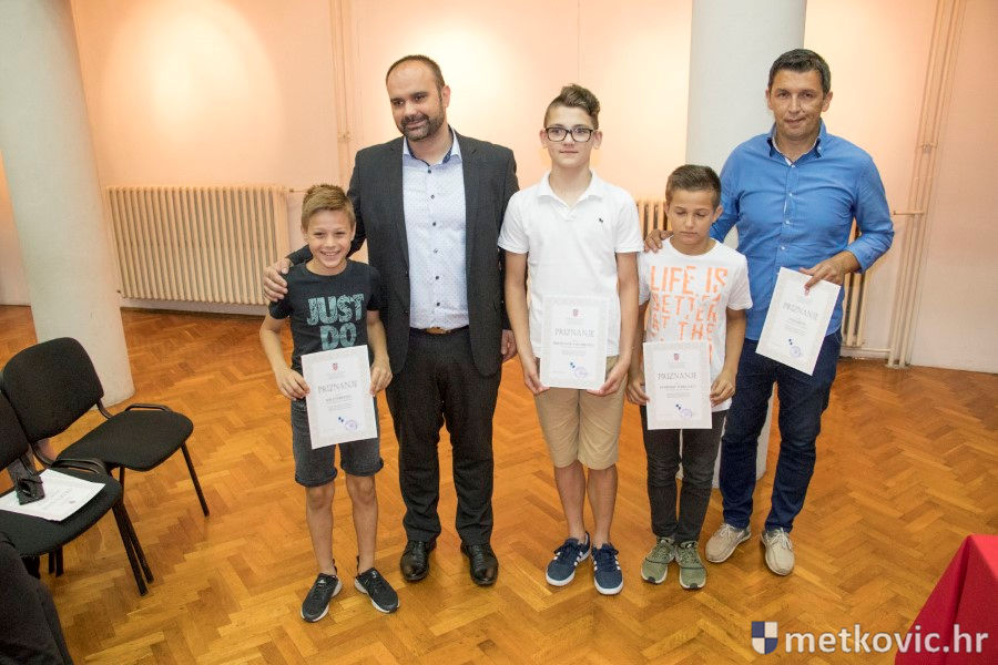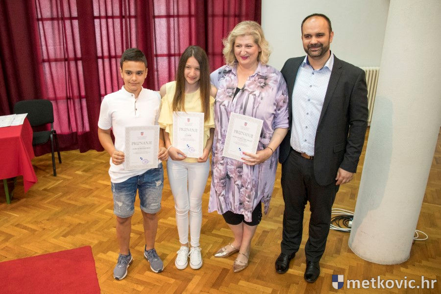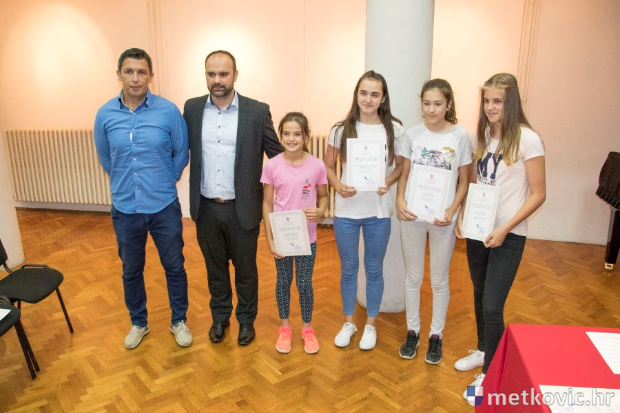 Metković, 28.6.2018. - U galeriji GKS-a danas je gradonačelnik Dalibor Milan primio učenike i mentore iz metkovskih osnovnih škola Stjepana Radića i don Mihovila Pavlinovića te im uručio priznanja za njihovo sudjelovanje i uspjehe na državnim natjecanjima u znanju i sportu te na smotrama.