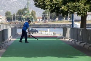 Vidljivo je kako je na lijevoj strani Neretve obala sređena i očišćena od plastičnoga otpada te je postavljena potrebna infrastruktura. Otišli smo i na desnu obalu te zabilježili montažu hidraulične startne naprave koja će omogućiti to da svi veslači krenu istovremeno, a u predvorju GKS-a, gdje je Akreditacijski centar, zatekli smo veslače pri prijavi i preuzimanju startnih brojeva.