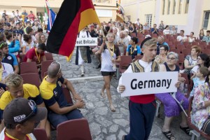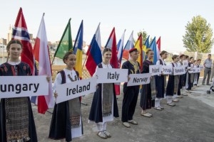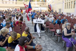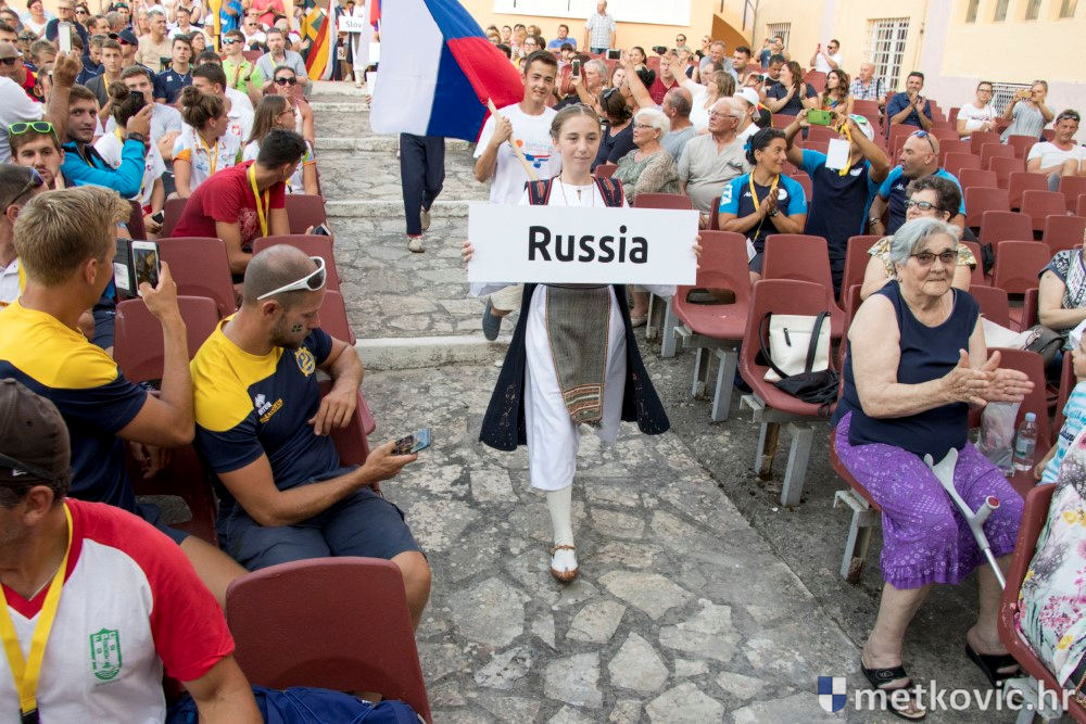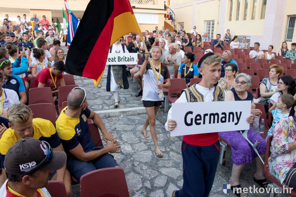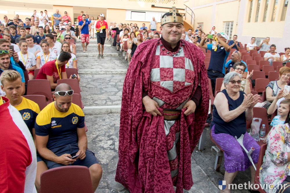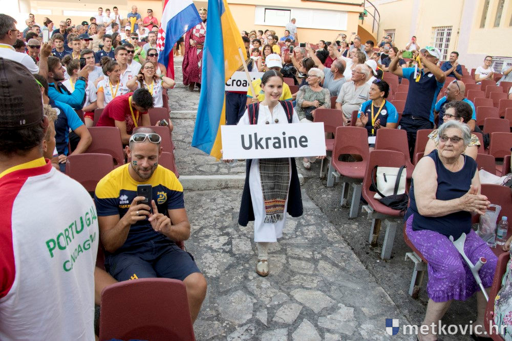 Ceremonija je započela svečanim mimohodom predstavnika zemalja sudionica, koji su koračali sa svojim zastavama. Tijekom intoniranja hrvatske himne Marijo Jurković je u ulozi kneza Domagoja podigao hrvatsku zastavu.