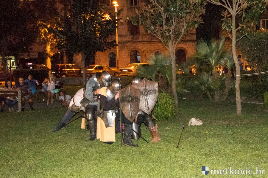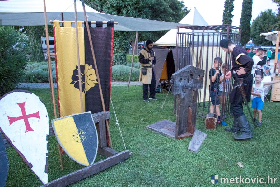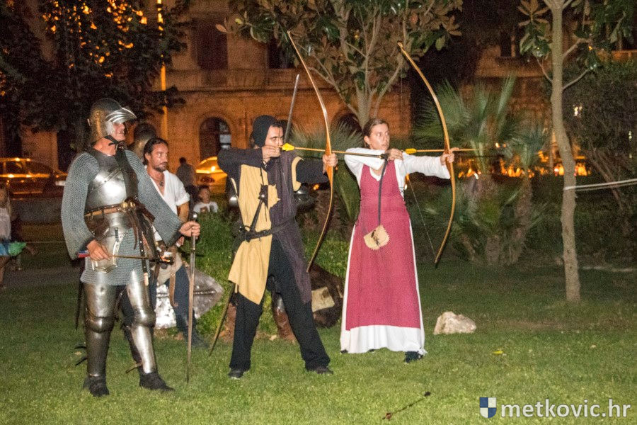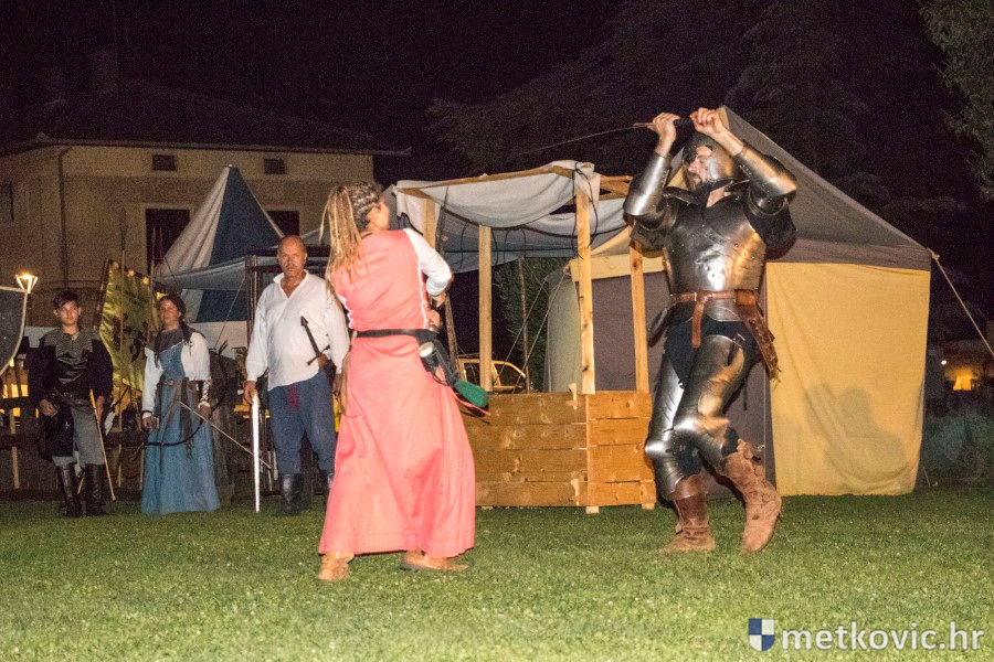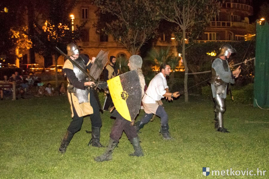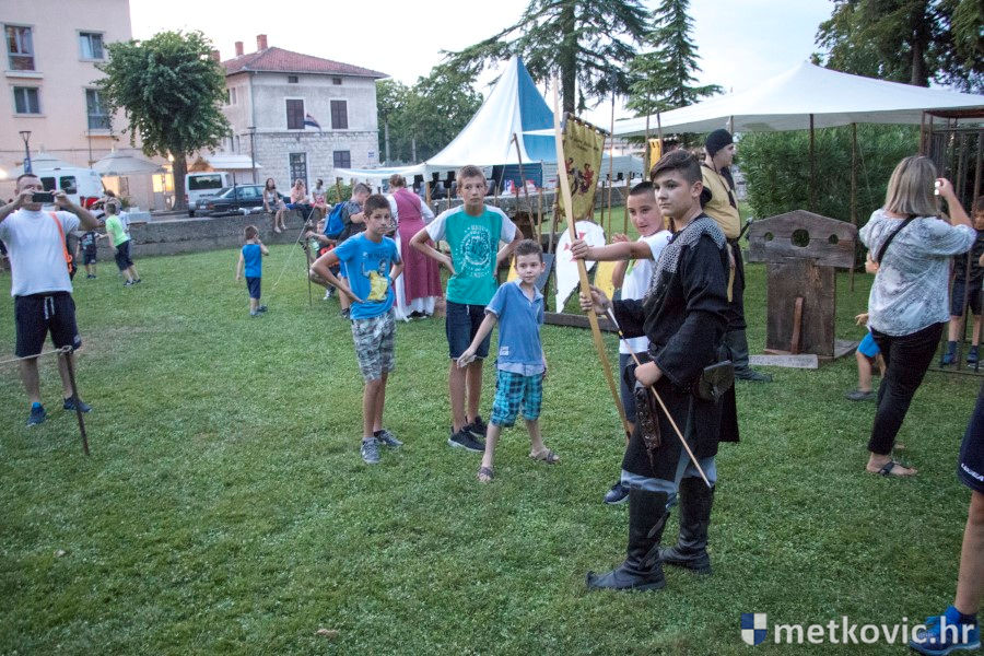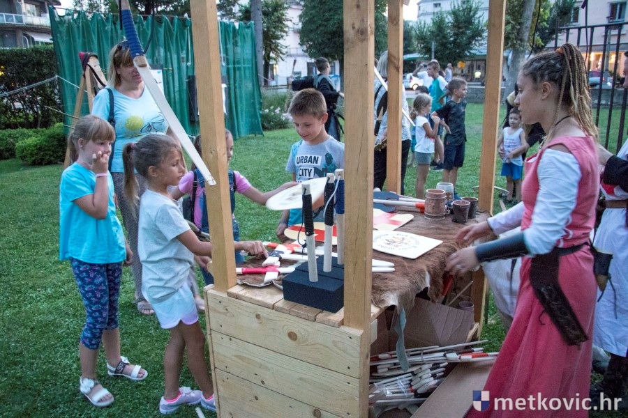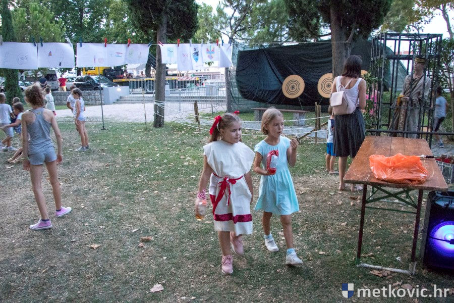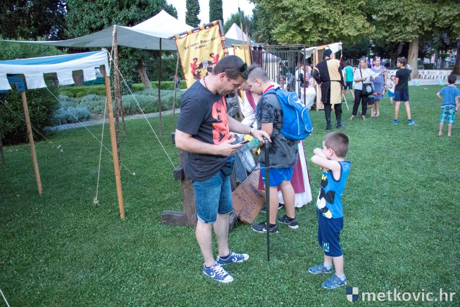 11.8.2018. - U Gradskome parku, što su ga zaposjeli mali neretvanski gusari, jučer je bilo iznimno živo. Nakon poslijepodnevne škole srednjovjekovnoga mačevanja i drugih vještina za njih je priređena predstava Dama i razbojnici te uprizorenje srednjovjekovne viteške bitke.