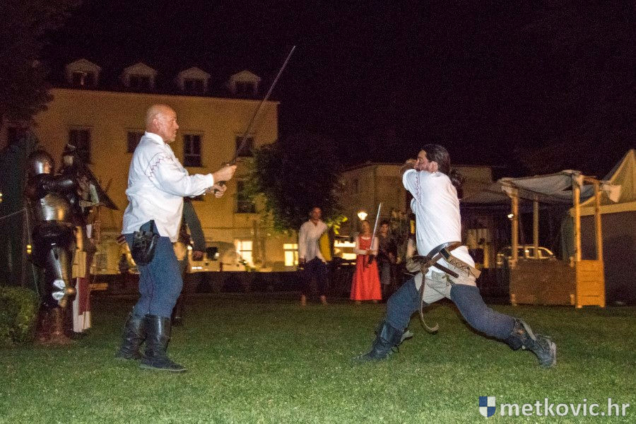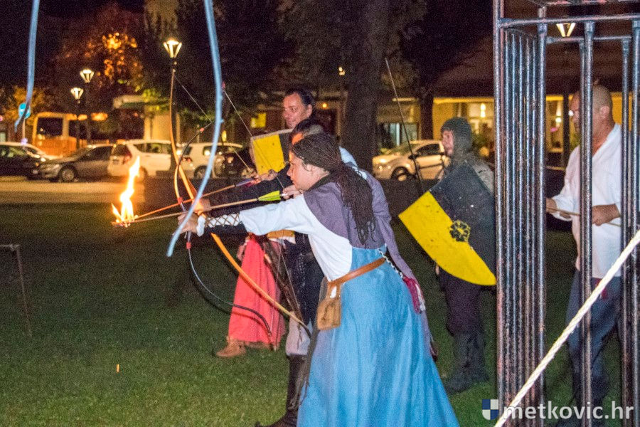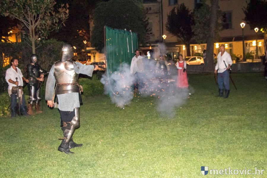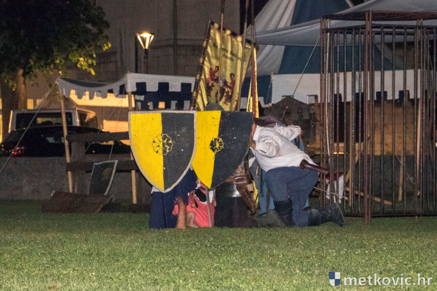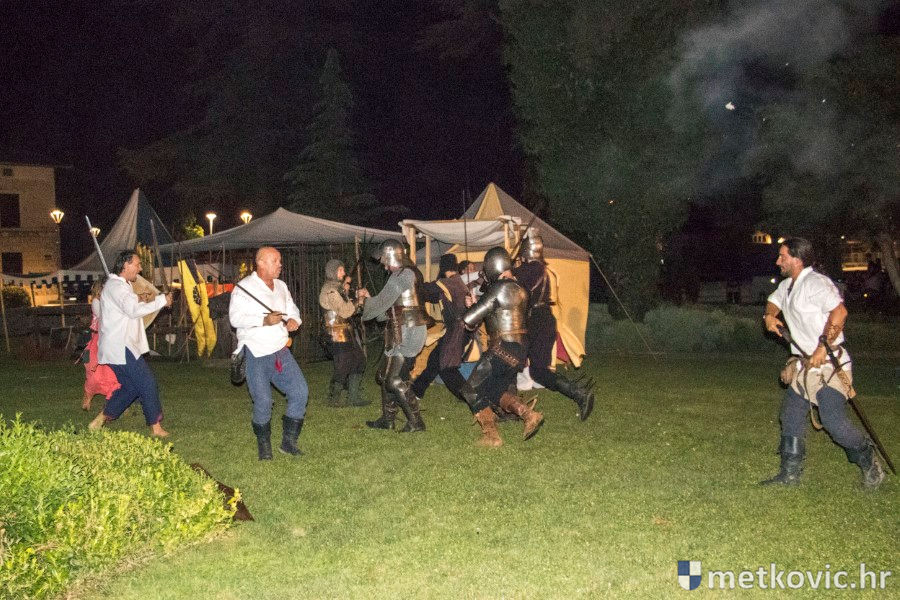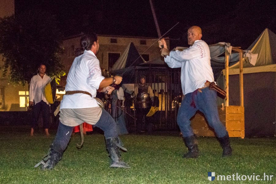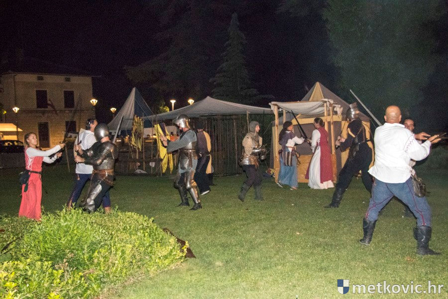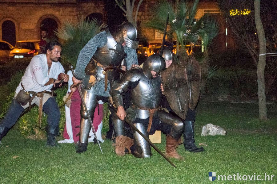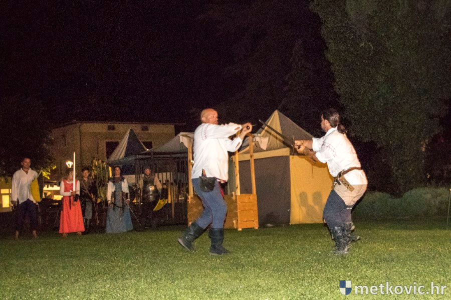 11.8.2018. - U Gradskome parku, što su ga zaposjeli mali neretvanski gusari, jučer je bilo iznimno živo. Nakon poslijepodnevne škole srednjovjekovnoga mačevanja i drugih vještina za njih je priređena predstava Dama i razbojnici te uprizorenje srednjovjekovne viteške bitke.