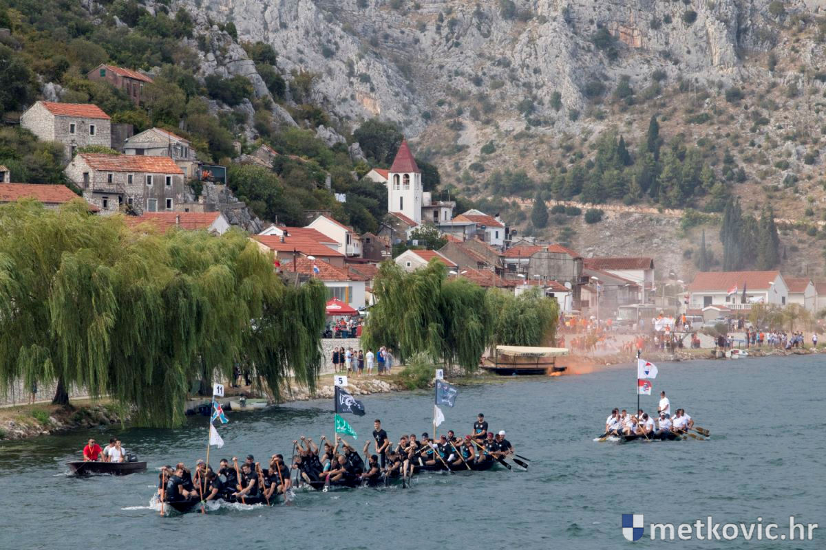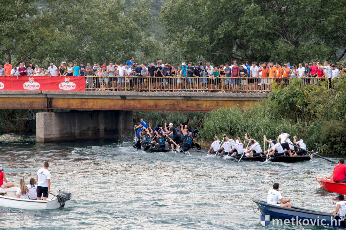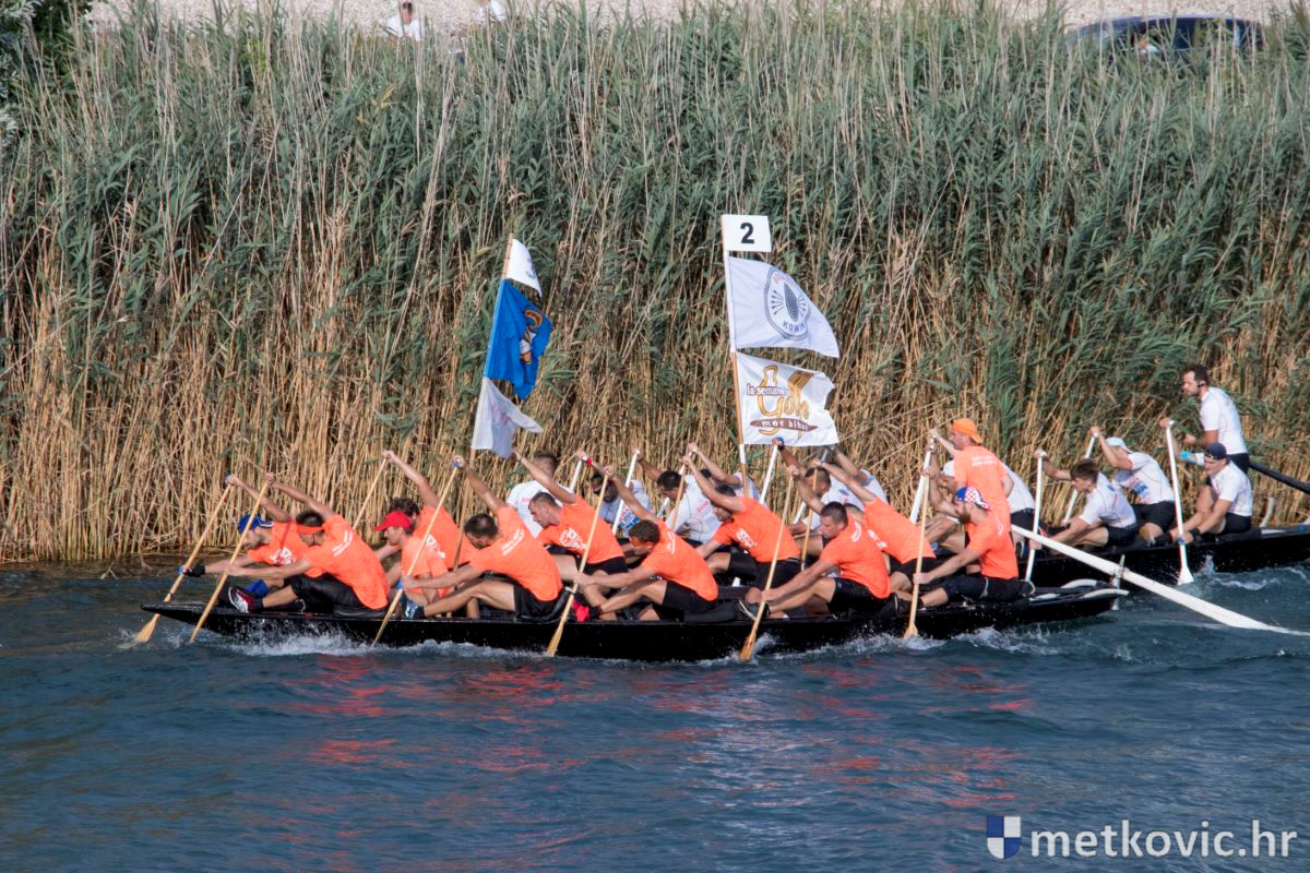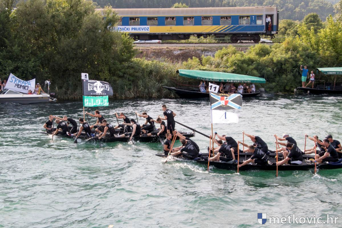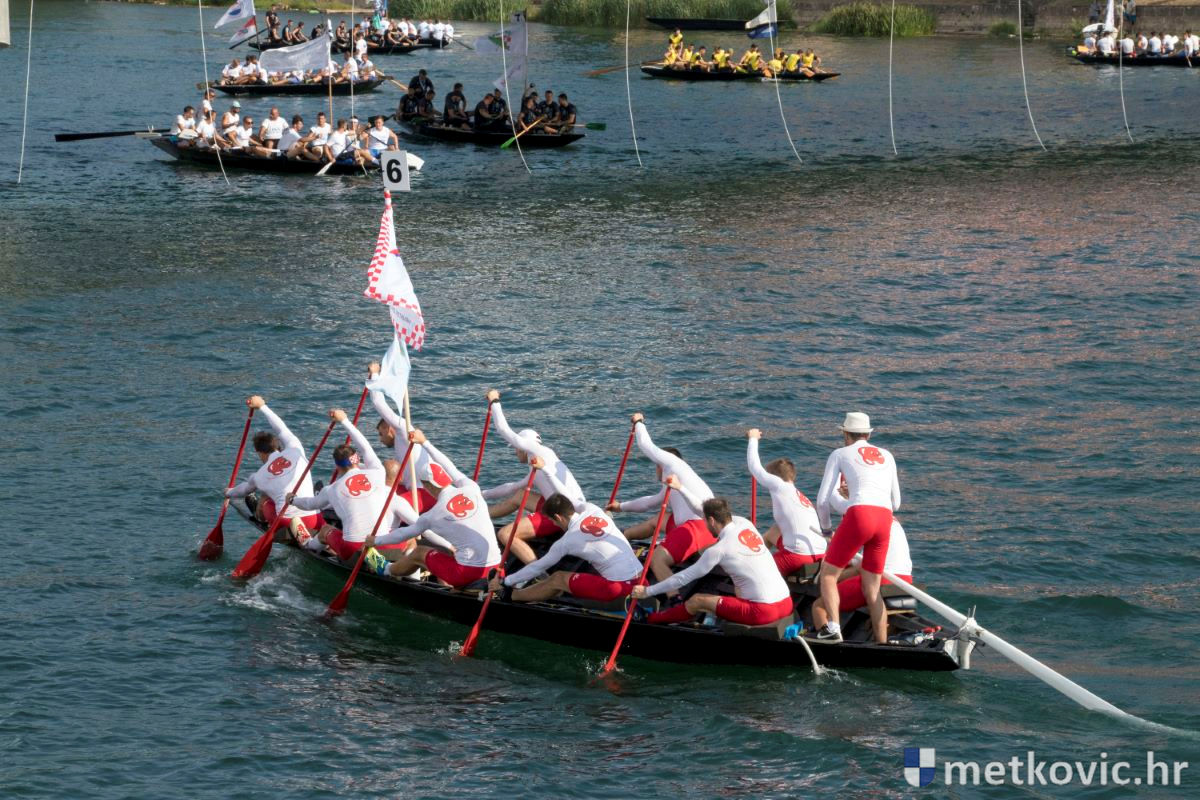 Pod visokim pokroviteljstvom predsjednice RH Kolinde Grabar-Kitarović jučer se Neretvom iz Metkovića put Ploča otisnulo 26 posada u neretvanskoj utrci svih utrka, koja sve više osvaja i ostatak Hrvatske. I ne samo to, neneretvanske ekipe sve su bolje i bolje pasirane u tome iznimno napornu natjecanju. To su osvajanjem drugoga mjesta ponovno dokazali bjelovarski Argonauti, a svako poštovanje zaslužili su: ekipa Hrvatskoga zavoda za transfuzijsku medicinu, HŠDO Bjelovar-Šumari i duga posada Argonauta, koji su se plasirali među prvih deset. Nije puno nedostajalo da to uspije ekipi Siska i Salašarima Somborskim.