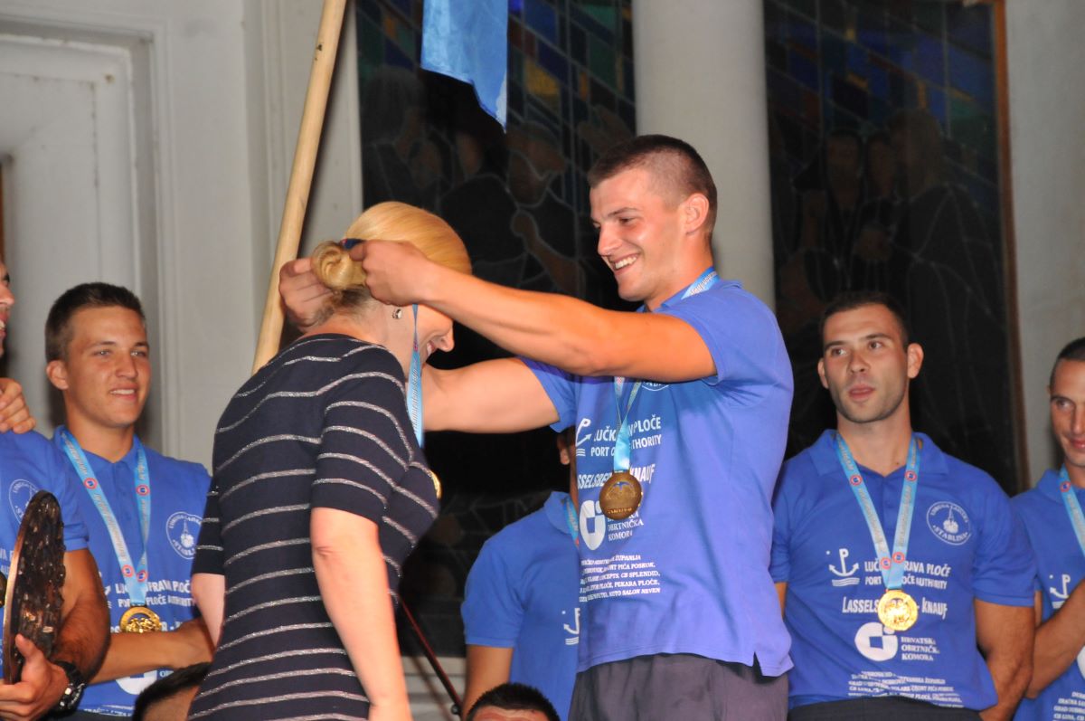 Veliki prijelazni Domagojev štit pobjedničkoj ekipi Stabline uručila je predsjednica Kolinda Grabar-Kitarović, medalje im je oko vrata objesio zapovjednik Hrvatske ratne mornarice komodor Ivo Raffanelli, dok im je mali Domagojev štit u trajno vlasništvo predao gradonačelnik Ploča Mišo Krstičević.