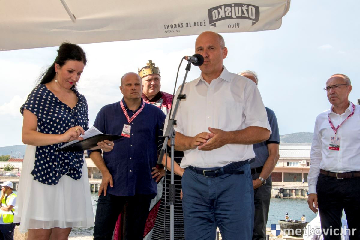 Program je počeo u Metkoviću postrojavanjem svih lađarskih ekipa na Trgu kralja Tomislava, koje je pozdravila predsjednica Grabar-Kitarović. Potom su uslijedili pozdravni govori metkovskoga gradonačelnika Dalibora Milana, župana Nikole Dobroslavića, ministra obrane Damira Krstičevića, koji je obećao da će dogodine na Maratonu nastupiti posada satnije mornaričkoga desantnog pješaštva, te Branka Bačića, a pročitan je i pozdravni telegram izbornika nogometne reprezentacije Zlatka Dalića.