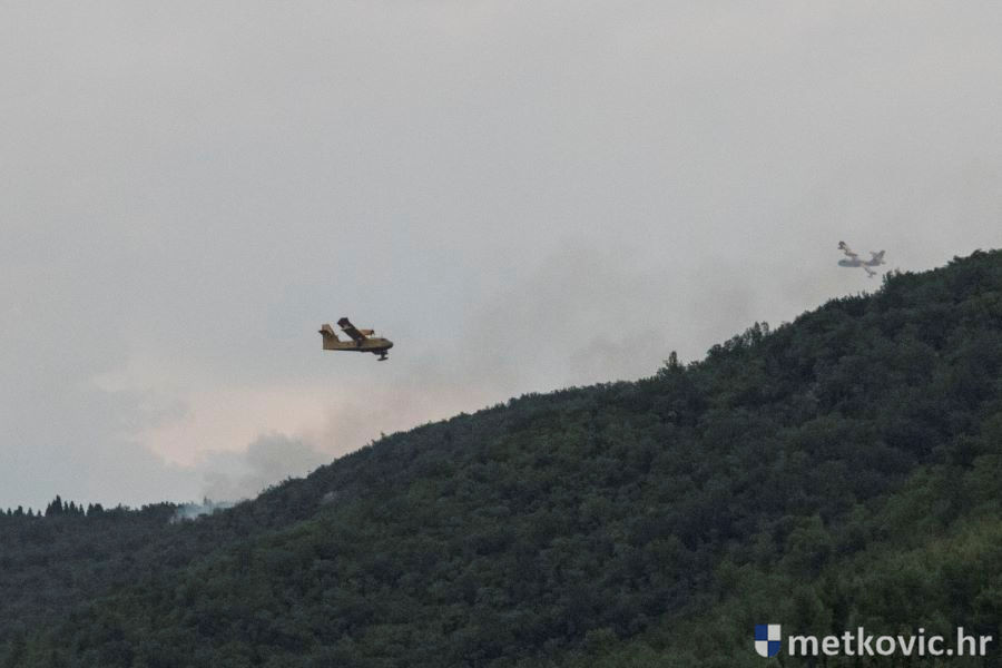 Požar su pokušala ugasiti dva kanadera te jedan air tractor, no zbog smrkavanja morali su odustati od daljnjih naleta. Vatra je izbila i na prijevoj između Šibanice i Zvijezdine iznad Doljana. S terena nemamo nikakvih informacija, osim što znamo da su na požarištu djelatnici JVP Metković.