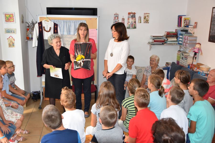 I mladi i stariji prisjetili su se lijepih druženja tijekom provedbe projekata izvaninstitucionalnoga odgoja i obrazovanja djece i mladih, koje je Udruga provodila u partnerstvu s OŠ Stjepana Radića. Zaigralo se tikava, a brojale su se i brojalice, stare i nove. Na kraju druženja, zamjenici ravnateljice pedagoginji Nikolini Vugdeliji uručen je sadak, izrađen na radionicama tijekom provedbe projekata Prozor u prošlost, vrata u budućnost i Kako su živjeli naši stari. Neretvanski sadak upotpunit će školsku etnografsku zbirku, a rađen je pod stručnim nadzorom voditeljice radionica Julije Kaleb.