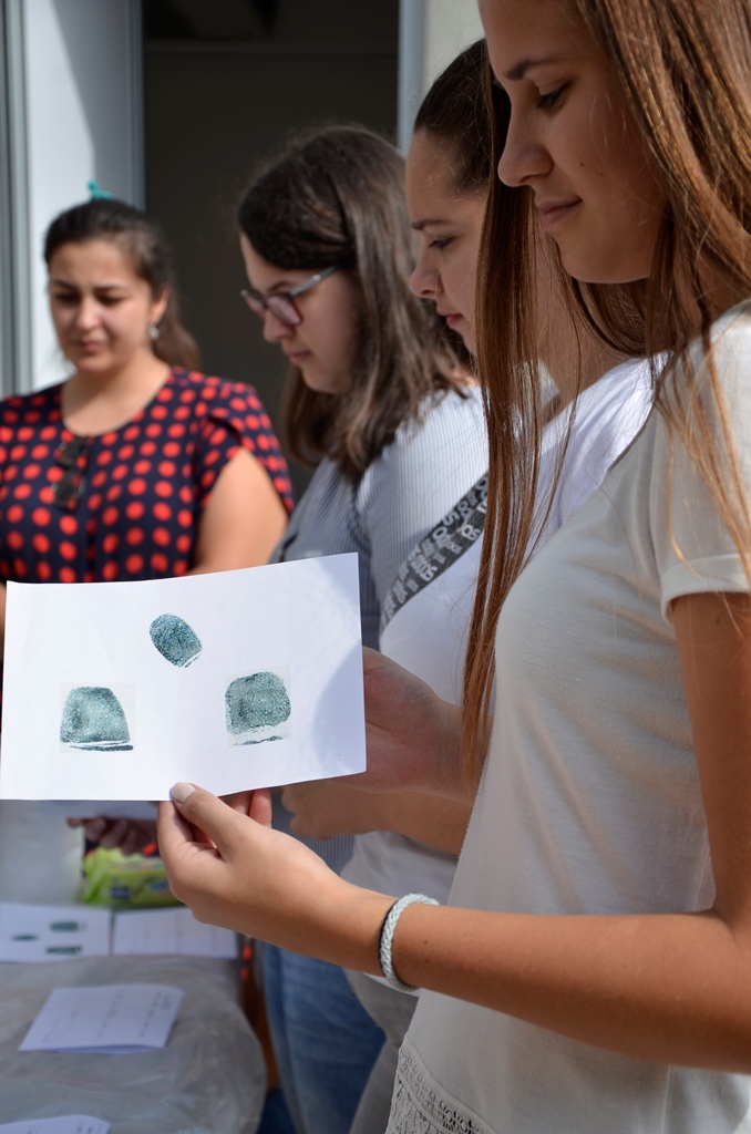 Radionica se održala u dva dijela. U prvom su se polaznici upoznali s povijesti korištenja otisaka prsta u forenzici, raznolikošću primjene i teorijom. U praktičnom dijelu uzimali su otiske, upoznavali se s vrstama otisaka i procjenom. Saznali su više načina na koje se može izuzeti otisak prsta s predmeta te naučeno primijenili na čašama, šalicama i bocama.U drugom dijelu pod nazivom Kosti upoznali su se s antropološkom analizom kosturnih ostataka te su uz pomoć voditelja slagali kostur i učili kako se iz kostiju može ustanoviti dob, spol, visinu kao i životne navike, ozljede na kosturu i još mnogo detalja.