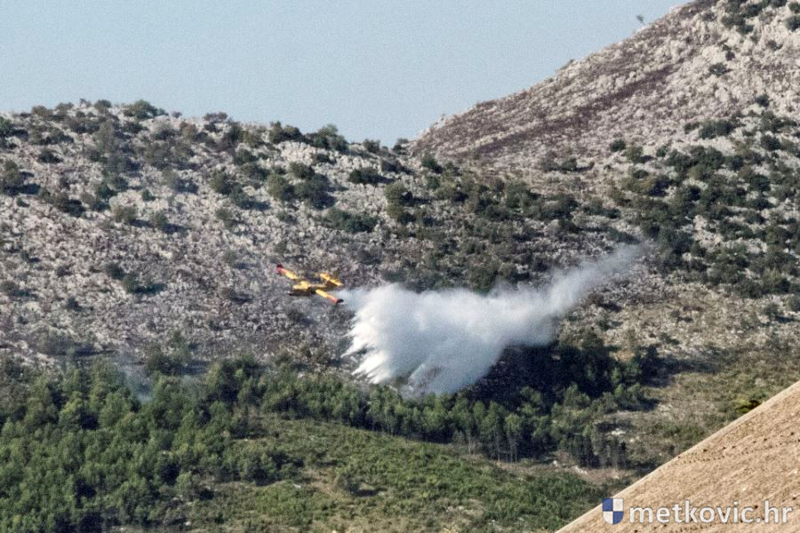 Metković, 26.9.2018. - Unatoč jakoj buri, trenutno na požarištu iznad Matijevića djeluju dva kanadera i to uspješno. Nadajmo se najboljemu.
