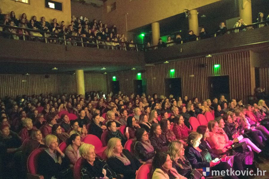 Metković, 16.11.2018. - Sinoć u mnogim kućama nije bilo prepirke oko toga što gledati. Mahom ženska publika pohrlila je u metkovsko kazalište na predstavu 'Dame biraju' pa su muški u miru mogli gledati kako Tin Jedvaj u posljednjim minutama sudačke nadoknade zakucava Španjolcima.