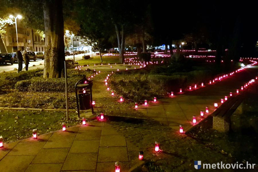 Obilježavanje toga tužnoga nadnevka u Metkoviću je počelo 2005. godine, kada su članovi metkovske Udruge tjelesnih invalida, danas Udruge osoba s invaliditetom 'Prijatelj', uz glavnu ulicu postavili upaljene svijeće. To je nastavljeno svake godine i širilo se na druga mjesta, a u parku se počelo s komemorativnim programom. Ove se godine 'Prijateljima' pridružila OŠ don Mihovila Pavlinovića, čiji su nastavnici i učenici izveli prigodan recital 'I u Metkoviću Vukovar svijetli', u kojemu u sudjelovali učenički i nastavnički zbor te Mješovita klapa 'Sveti Nikola'.