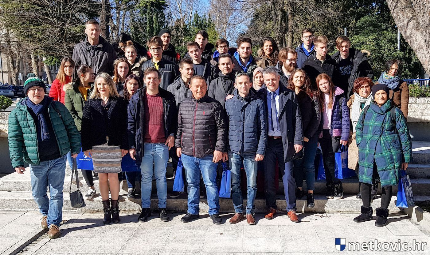 16.2.2019. - Zamjenik gradonačelnika Damir Raić u Galeriji GKS-a primio je 12 učenika i sedmero nastavnika iz Italije, Slovenije i Turske, koji u sklopu ERASMUS+ projekta G.E.O.P.A.R.K.S.- Curtural Heritage gostuju u Srednjoj školi Metković te im uručio prigodne darove.