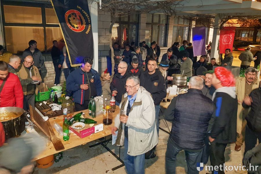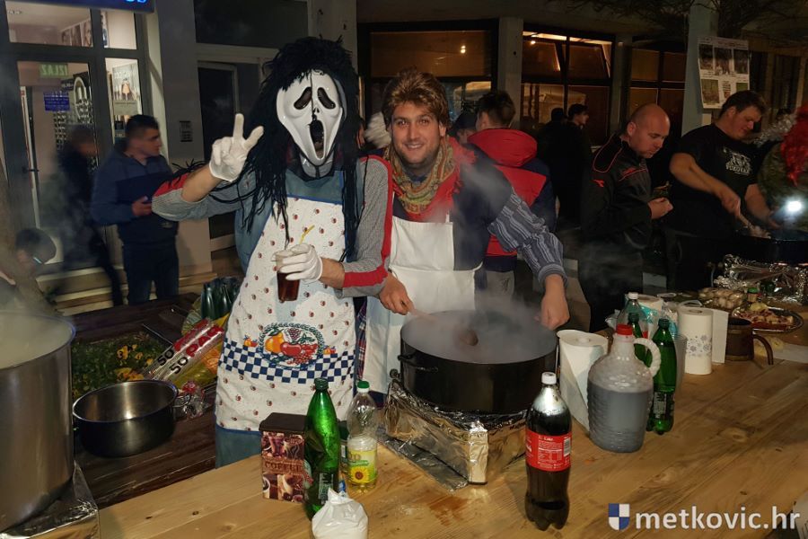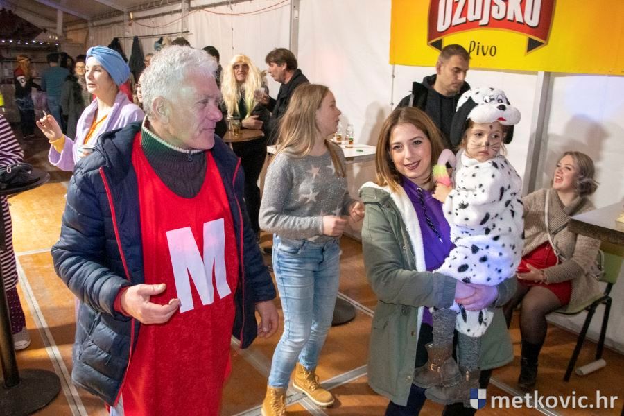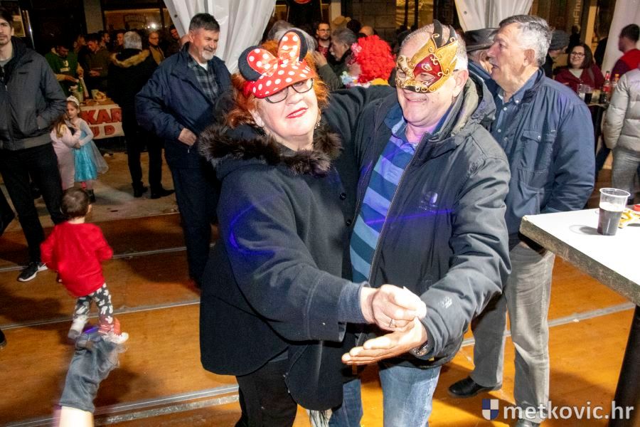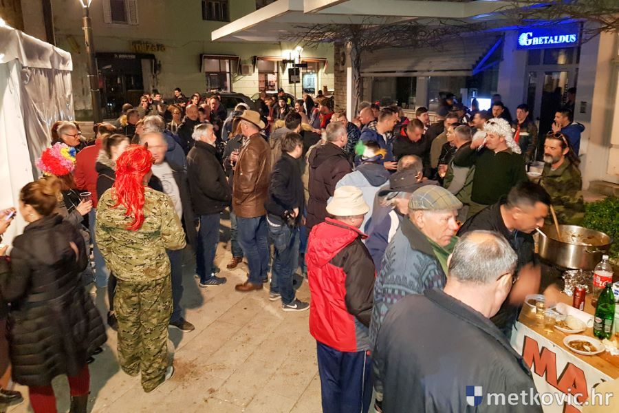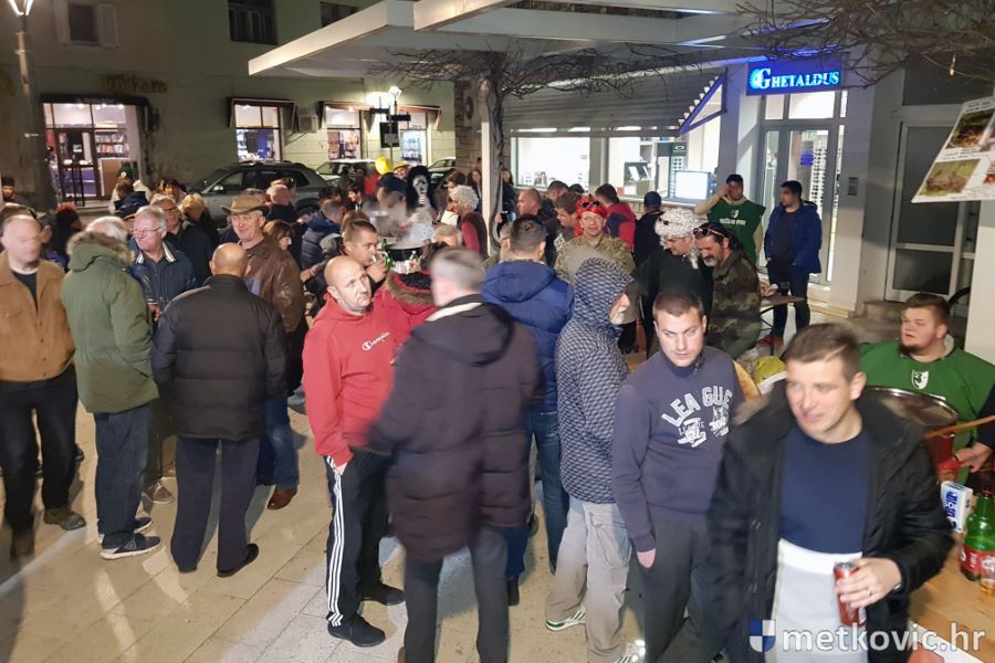 Pogodno vrijeme omogućilo je brojnom društvima da pred šatorom kuhaju i služe svoja jela te vinom napajaju mnoga suha grla, dok je u šatoru za gubitak (kilo)grama bio zadužen DJ Ruđo. Njega su u stankama mijenjale maškarane članice KUD-a Metković, koje su uz glazbenu pratnju svojih kolega pjevale pjesme kakve su se u Metkoviću nekada pjevale za maškara. Program je upotpunila i KUD-ova plesna skupina koja je izvela Linđu.