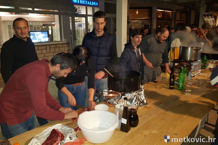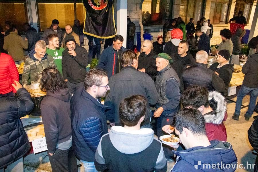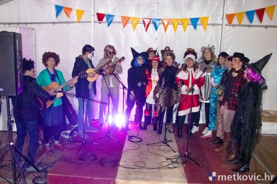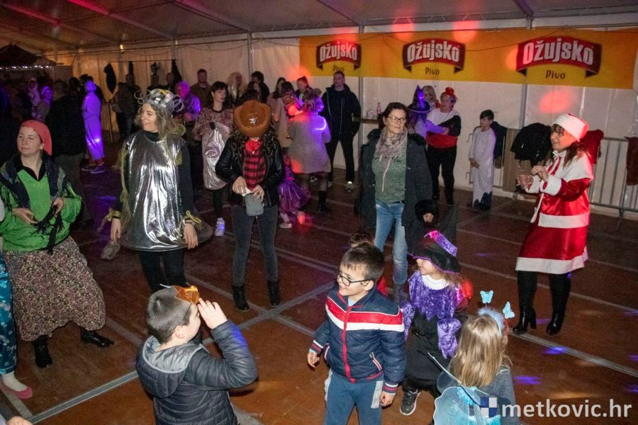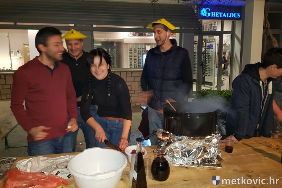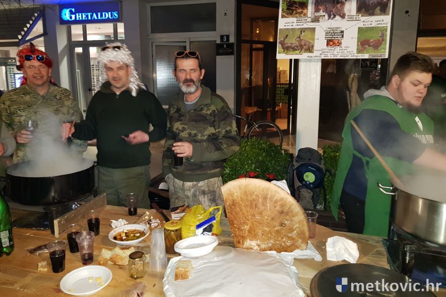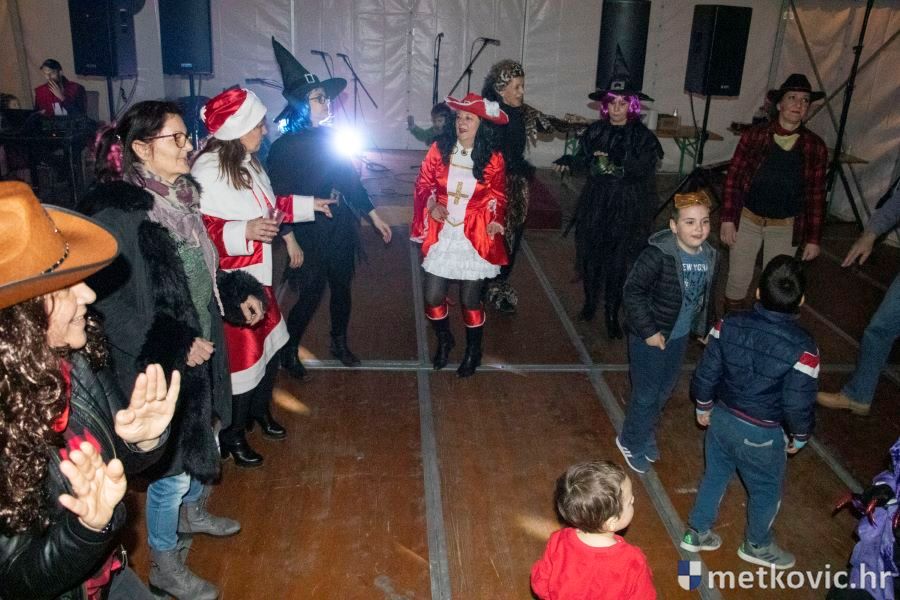 Pogodno vrijeme omogućilo je brojnom društvima da pred šatorom kuhaju i služe svoja jela te vinom napajaju mnoga suha grla, dok je u šatoru za gubitak (kilo)grama bio zadužen DJ Ruđo. Njega su u stankama mijenjale maškarane članice KUD-a Metković, koje su uz glazbenu pratnju svojih kolega pjevale pjesme kakve su se u Metkoviću nekada pjevale za maškara. Program je upotpunila i KUD-ova plesna skupina koja je izvela Linđu.