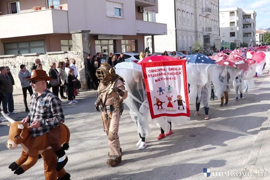 Nakon što su se svi skupili na Trgu kralja Tomislava uslijedilo je proglašenje najboljih i čitanje optužnice Marku Krnjevalu. Najboljom skupnom maskom proglašene su Gljive iz OŠ Stjepana Radića, druga je skupina Kremenko iz Vida, a treće mjesto dijeli Pop-art Gimnazije Metković i Puž (Dobra spiza iz Neretve) Prirodoslovnoga muzeja Metković. Od pojedinačnih maska nagradu su dobili Kauboj i Ronilac te Silvestar i bakica, dok je utješna nagrada za kreaciju pripala skupini Slikari (Galerija) iz OŠ don Mihovila Pavlinovića. Za male maškare u velikom je šatoru prirađena maškarana zabava.