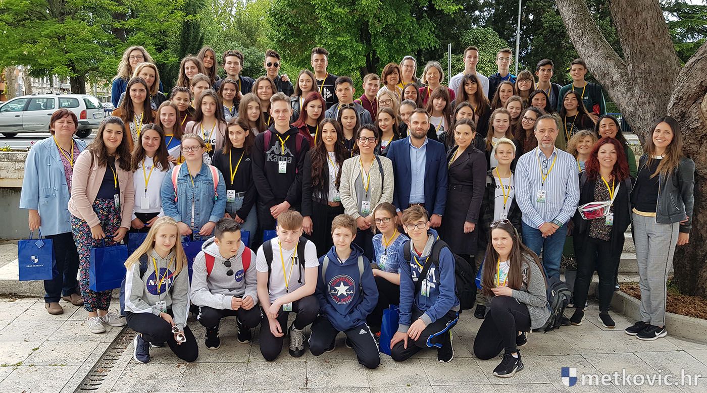 7.5.2019. - Pročelnik Jedinstvenog upravnog odjela Grada Metkovića Ivica Popović jučer je u Galeriji Ustanove za kulturu i sport Metković primio 30 učenika i 12 njihovih profesora, koji su iz Španjolske, Portugala, Velike Britanije, Italije i Poljske u Metković došli u sklopu ERASMUS+ projekta Maths rooutes around Europe.