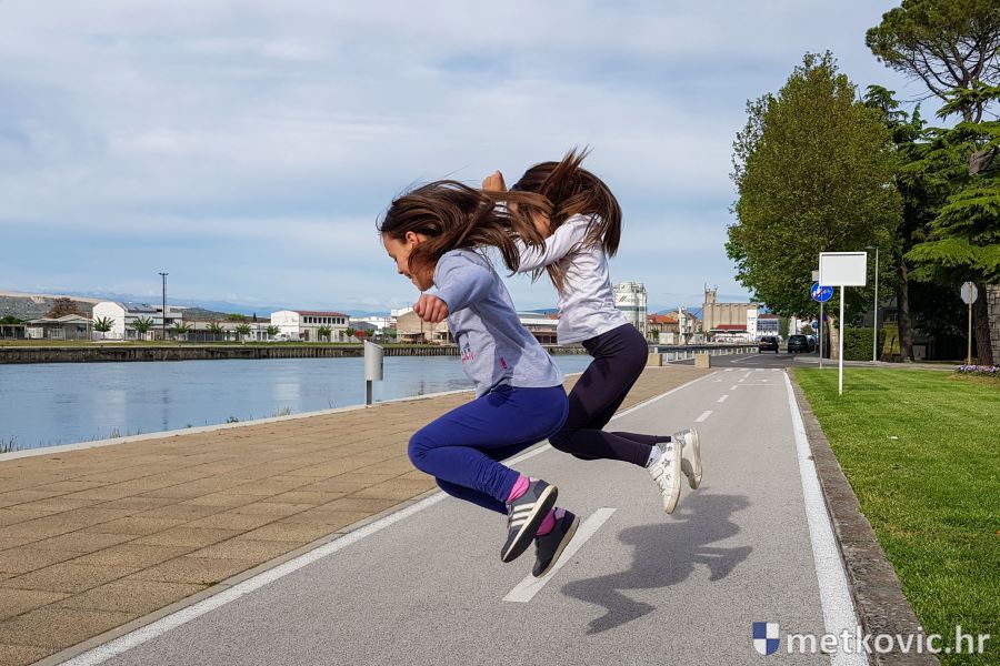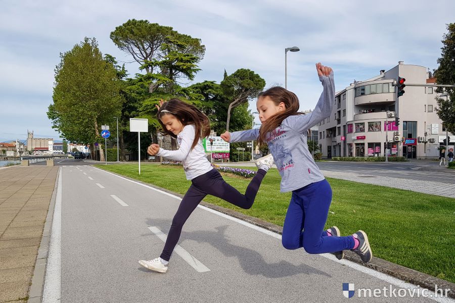 Metković, 12.5.2019. - Premda je bila subota popodne i lijepo vrijeme, inače puno Šetalište 116. brigade HV-a bilo je neobično prazno. Ipak, zabilježili smo ovaj lijep, nažalost sve rjeđi, prizor.