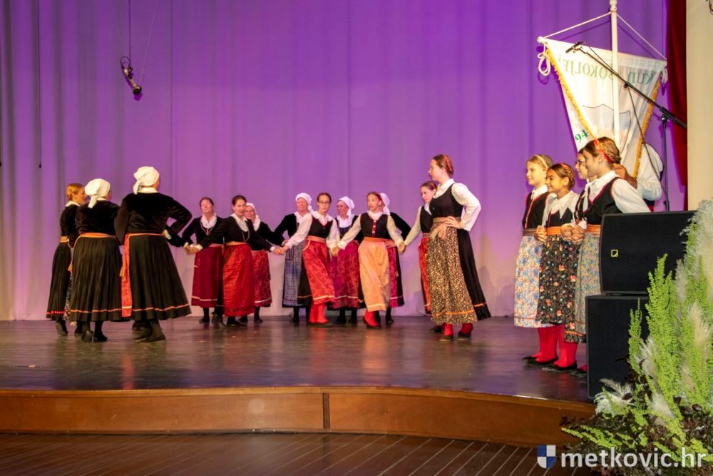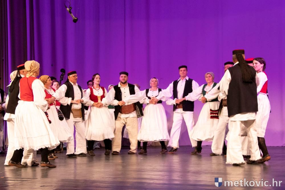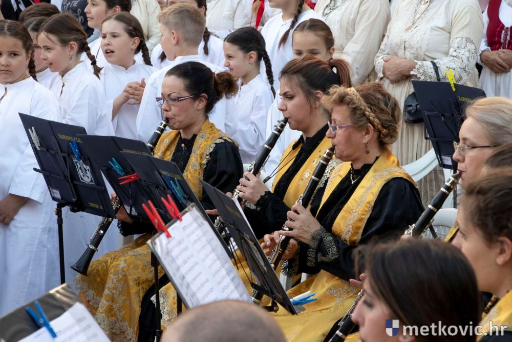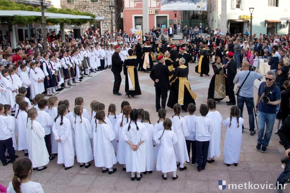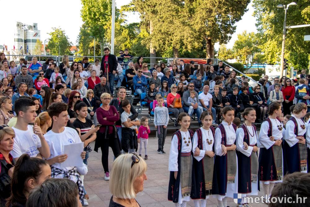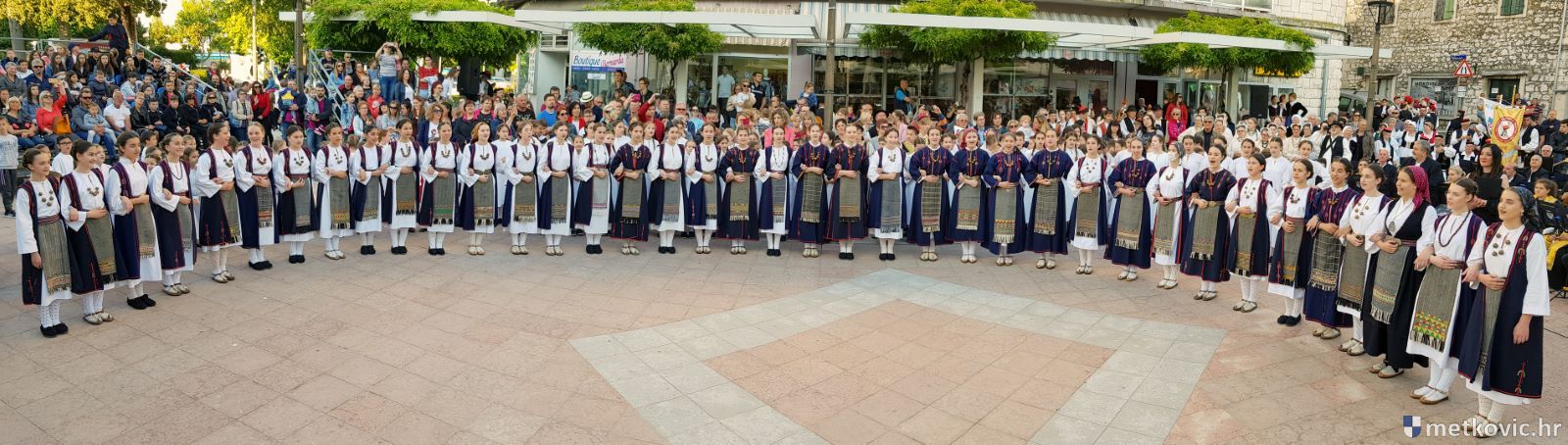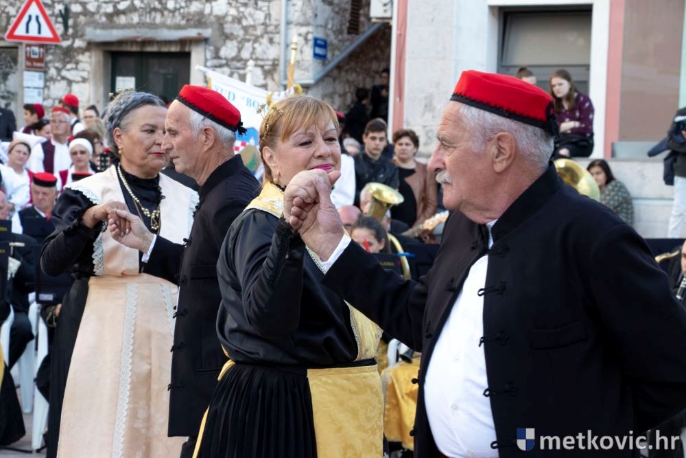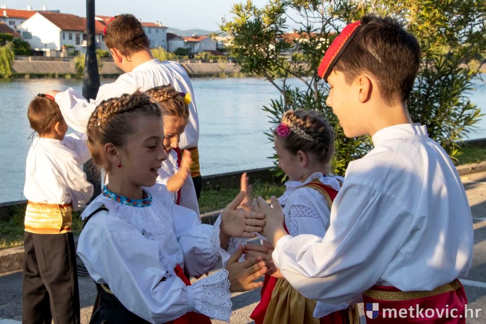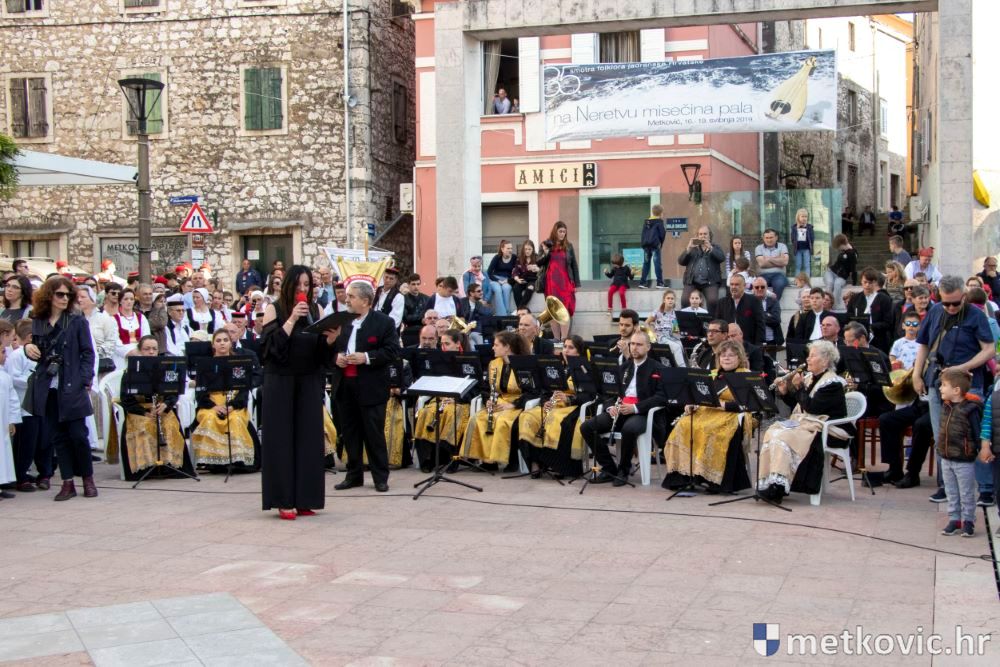 Na prepunom trgu posjetitelje je pozdravila dječja skupina KUD-a Metković te iz Trogira Narodna glazba i KUD Kvadrilja, dok je velika ženska pjevačka skupina KUD-a Metković otpjevala zaštitnu pjesmu Smotre Na Neretvu misečina pala.