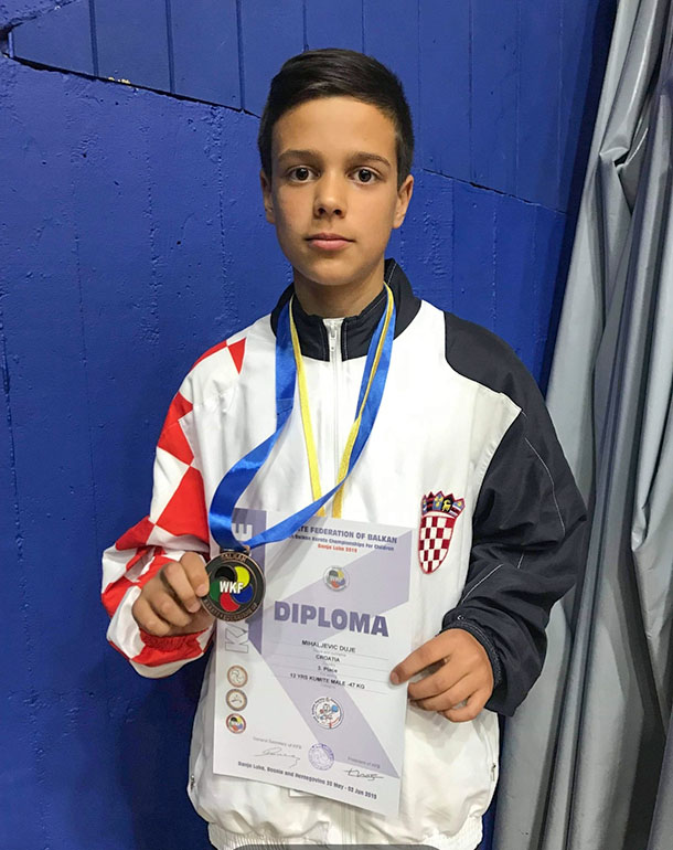 Metković, 3.6.2019. - Kao reprezentativac Hrvatske, borac Karate-kluba Metković Duje Mihaljević s Balkanskog prvenstva doma donosi četvrtu medalju koju natjecatelji KK Metković osvajaju za našu Hrvatsku.