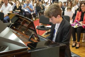 S ponosom je Knežević prije početka koncerta pozvao devetero svojih učenika te njihove nastavnike i korepetitore te im uručio priznanja za izvanredne uspjehe na domaćim i međunarodnim natjecanjima. To su: