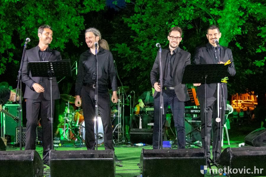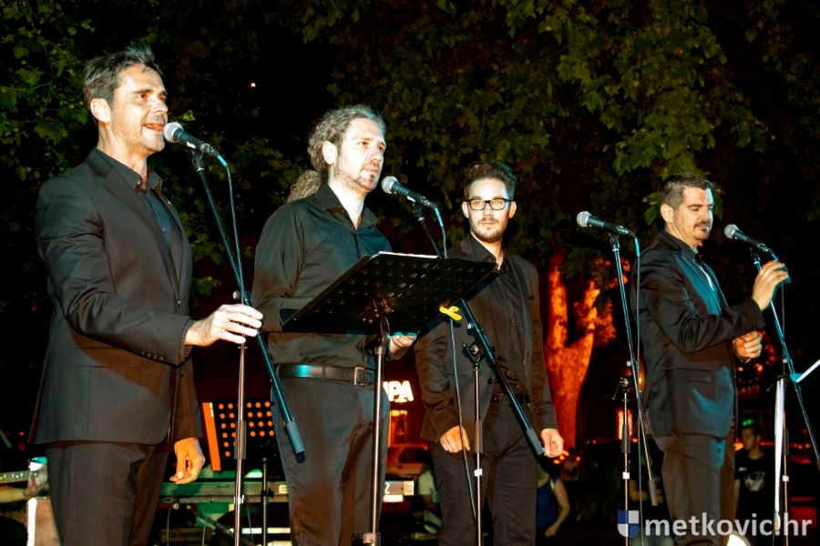 Metković, 24.6.2019. - Metkovsko ljeto nastavilo se sinoć koncertom četiriju pjevača, koji ove sezone nastupaju pod nazivom '4 tenora'. Marko Pecotić, Đani Stipaničev, Vlado Garić i Filip Hozjak dva su sata svojim glasovima plijenili pozornost brojne publike popularnim domaćim pjesmama, stranim evergrinima i arijama iz klasičnih djela.