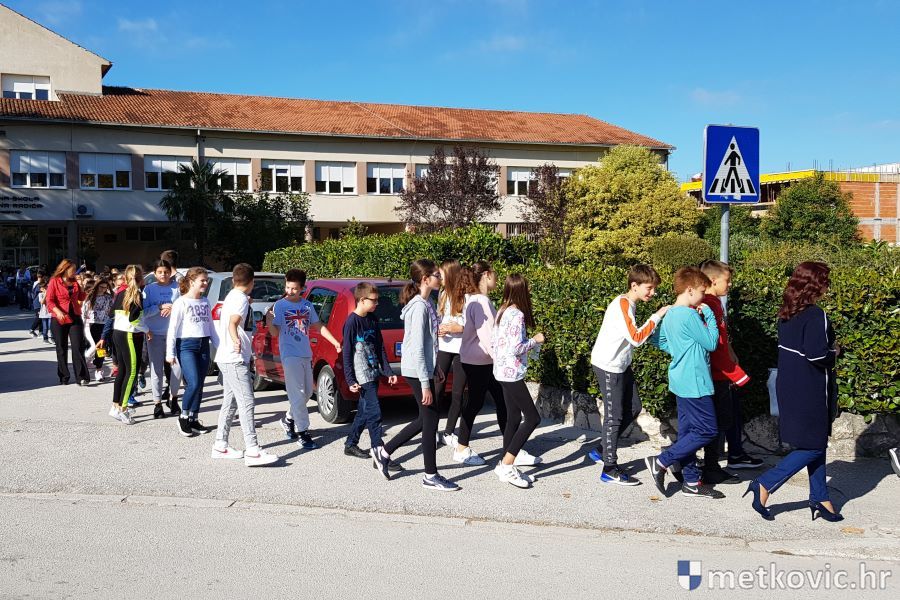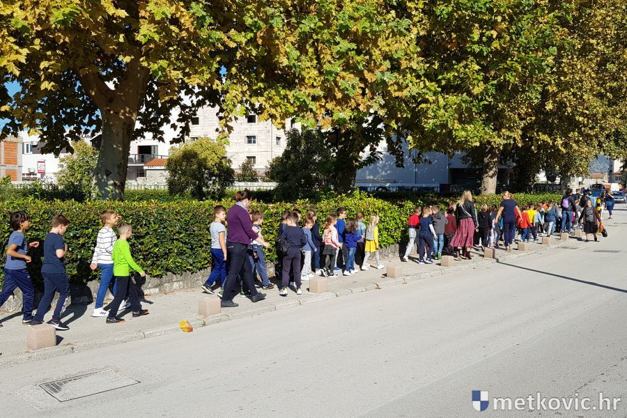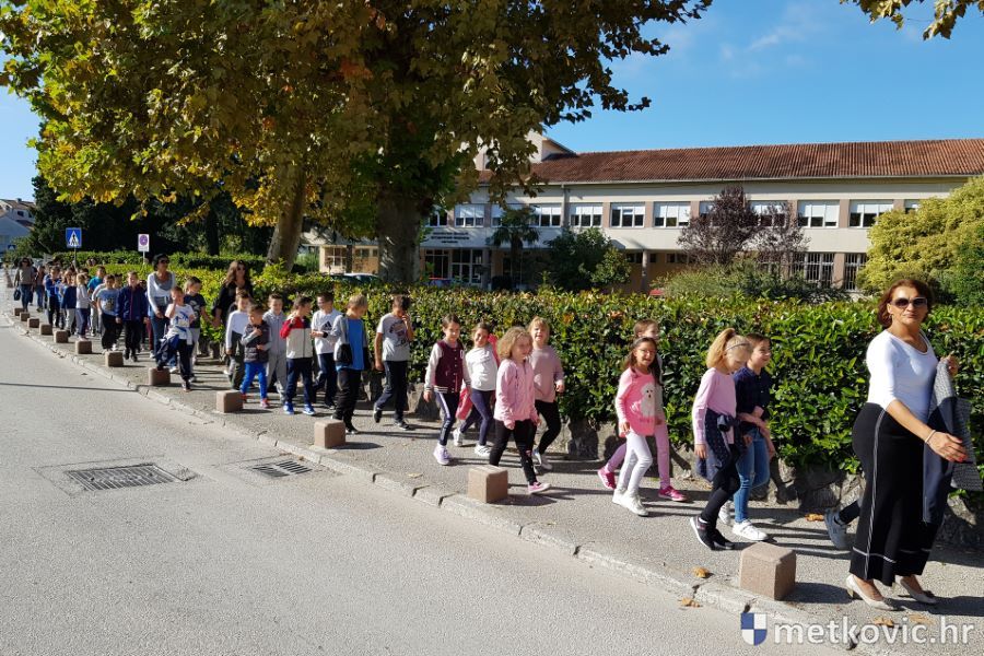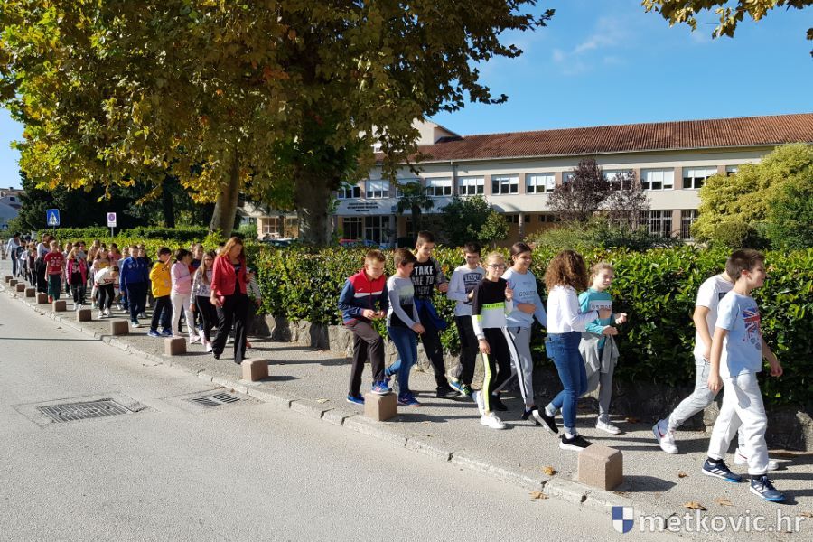 Pod sloganom 'Pješačenje – naš doprinos zdravom životu i očuvanju prirode!' djeca su prošla Ulicom kralja Zvonimira do Trga kralja Tomislava te se Ulicom Ivana Gundulića i don Rade Jerkovića pa se Sportskom ulicom vratila do škole.