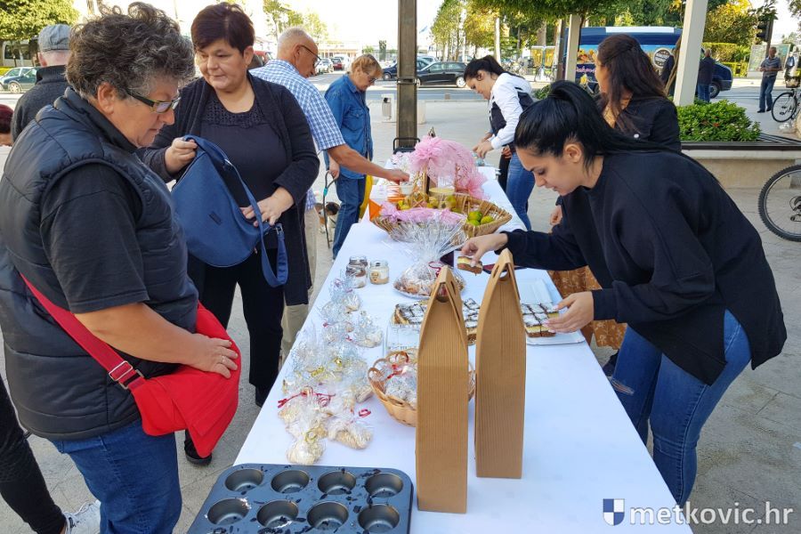 Metković, 18.10.2019. - Danas u 10 sati na Trgu kralja Tomislava započela je humanitarna prodaja kolača, od koje će prikupljeni novac biti uplaćen za obnovu kuće bjelovirske obitelji Nuraj.