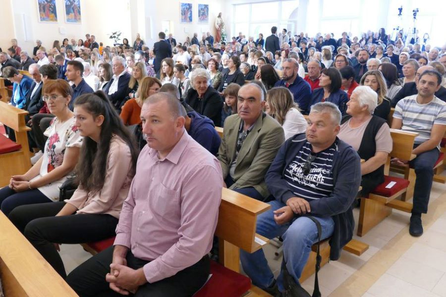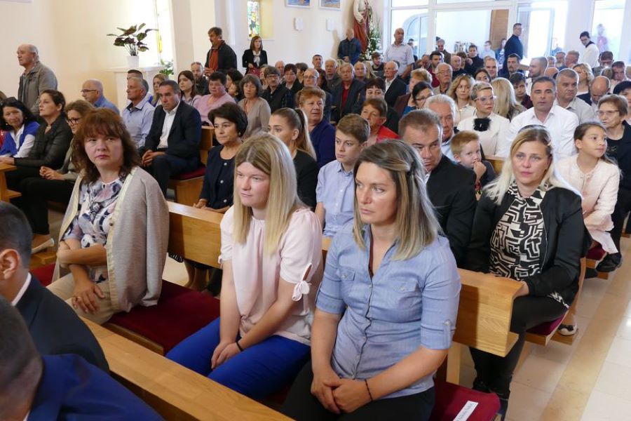 Metković, 28.10.2019. - Posebno je svečano jučer bilo u crkvi sv. Nikole biskupa, u kojoj je splitsko-makarski nadbiskup i metropolit mons. Marin Barišić predvodio misno slavlje, tijekom kojega je uz još šestoricu bogoslova iz naše nadbiskupije za đakone zaredio Metkovce fra Ivu Rastočića i don Slavka Volarevića.