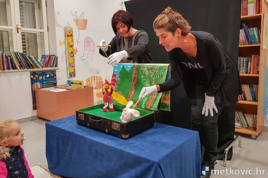 7.11.2019. - Što se sve može dogoditi djevojčici koja je na putu do bakice zaboravila majčine savjete i skrenula s puta, živom riječi i lutkama iz kufera metkovskim su mališanima sinoć u Gradskoj knjižnici Metković dočarale glumice-animatorice Carmela Grgurević, Hana Čerimagić Sarić i Lucijana Pendo iz dubrovačkoga Kulturnog društva Aster.